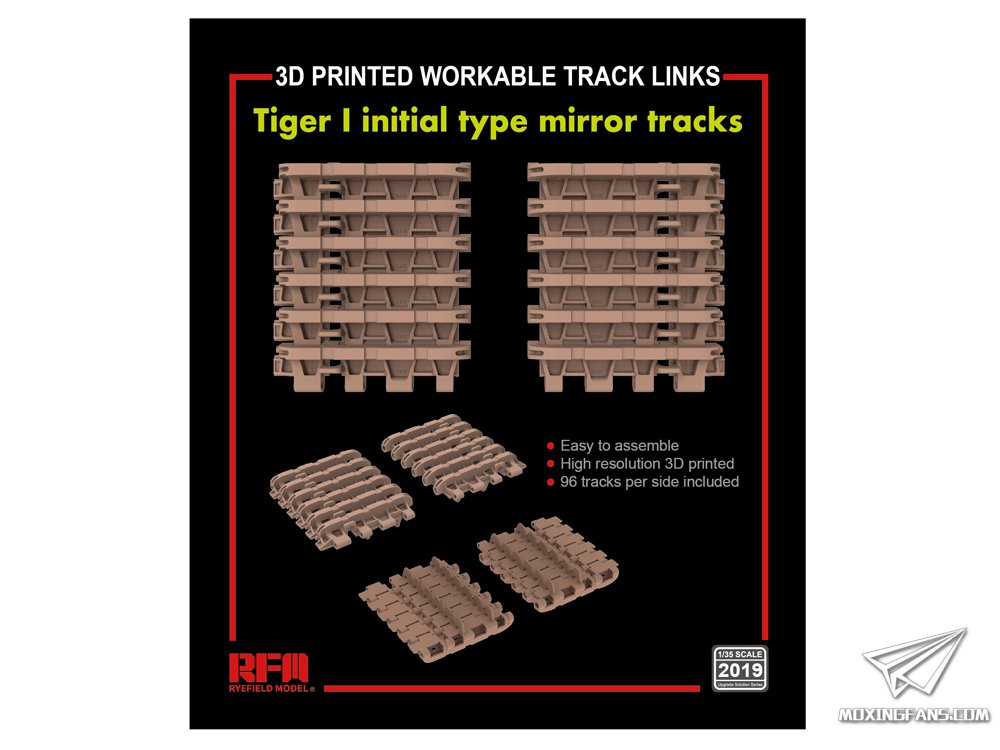 对于要求较高的模友,麦田还同时发布了适配于这款极初期虎式坦克的官方改造件(RM-2016)和3D打印的活动履带(RM-2019)。