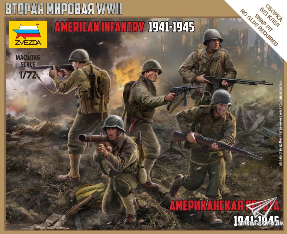红星(ZVEZDA)发布了一款新品小比例兵人:1/72比例的美国步兵1941-1945。这组兵人共5人组成,神态各异,装备齐全,上市时间未知。近几年推出小比例兵人的厂家越来越少了,模友们且买且珍惜吧。