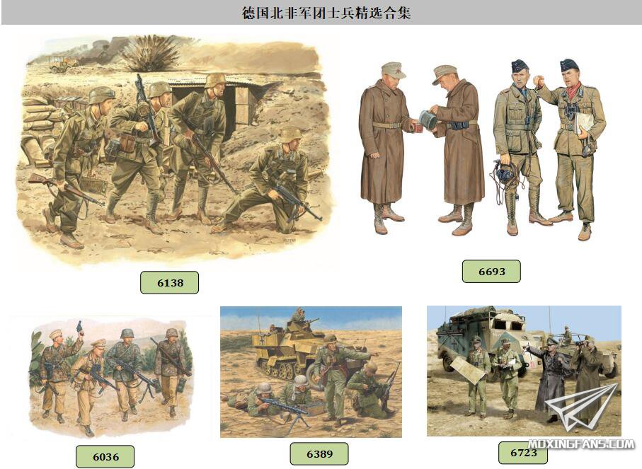 6036 德国赫尔曼·戈林师 (突尼斯1943) ¥54 6138 德国非洲军团步兵 ¥54 6389 德国非洲兵团装甲掷弹兵(阿拉曼1942) ¥60 6693 德国非洲军团 坦克乘员& 炮兵 (利比亚1941) ¥60 6723 隆美尔和幕僚军官组 (北非1942) ¥60 |
