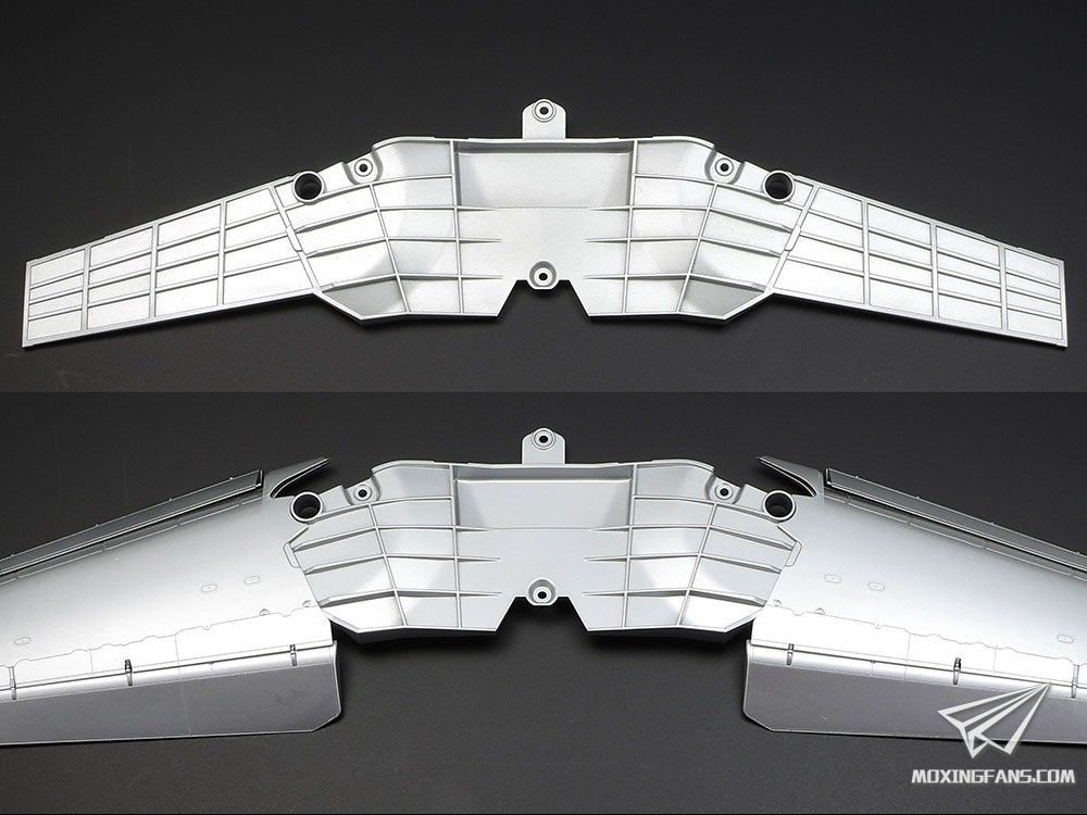 左右主翼的连接零件为一体成型,结构坚固,可以以正确的角度固定主翼。