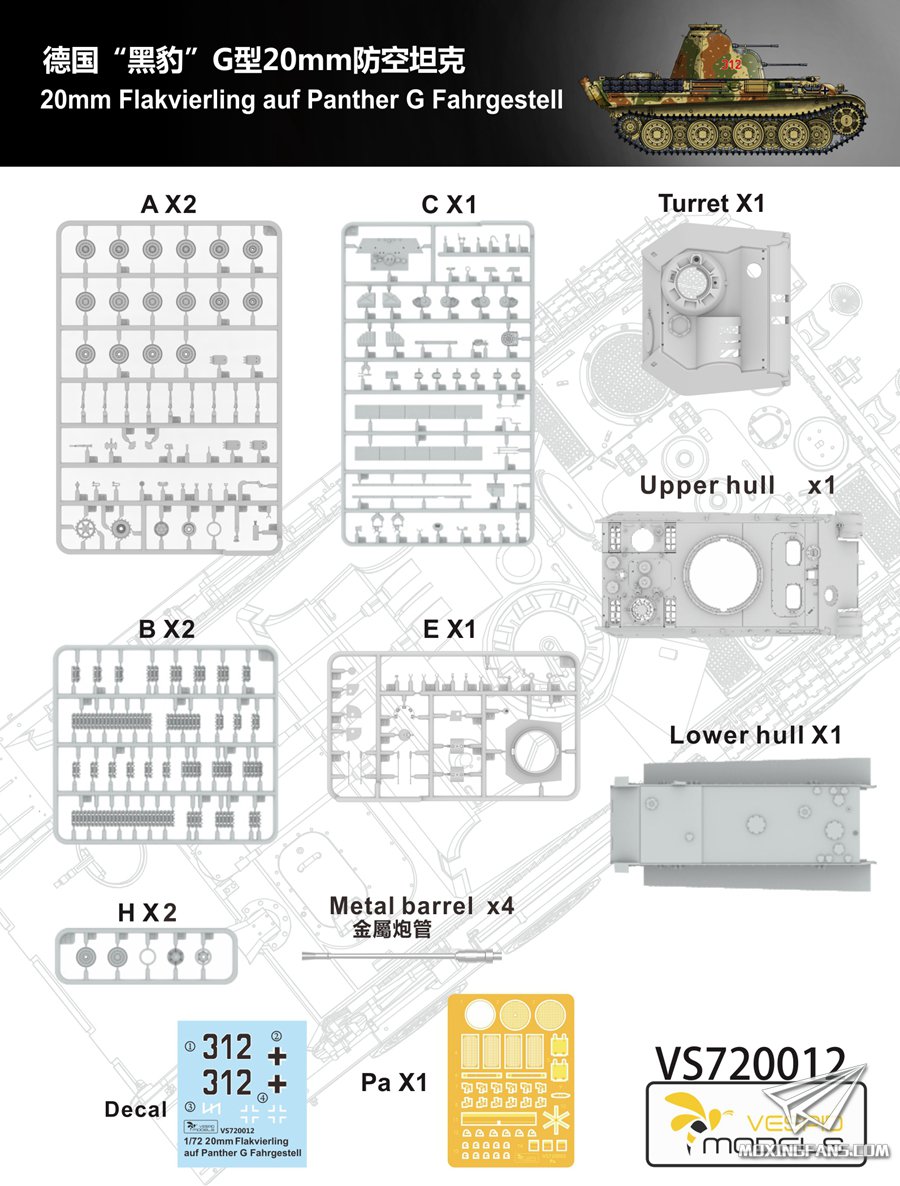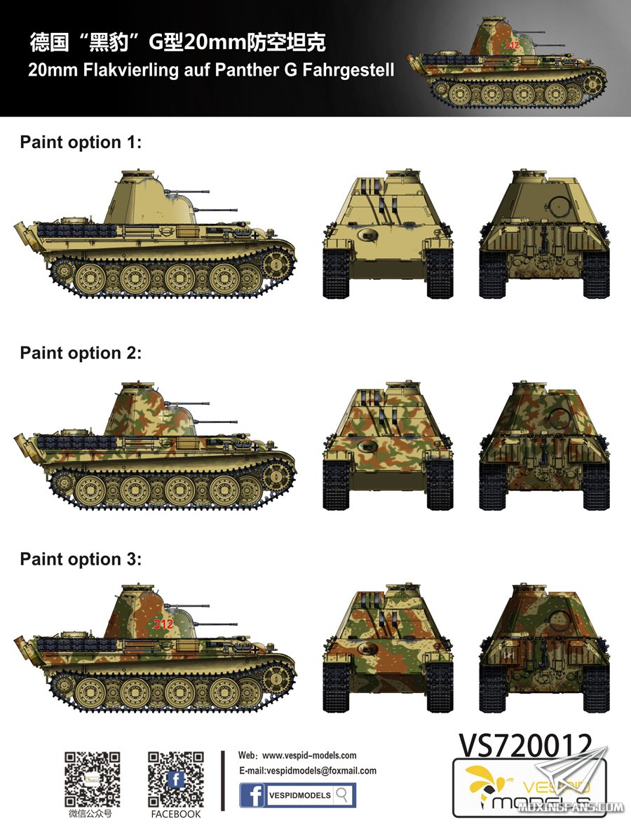【黄蜂 VS720012】1/72 德国黑豹G型20mm防空坦克开盒评测