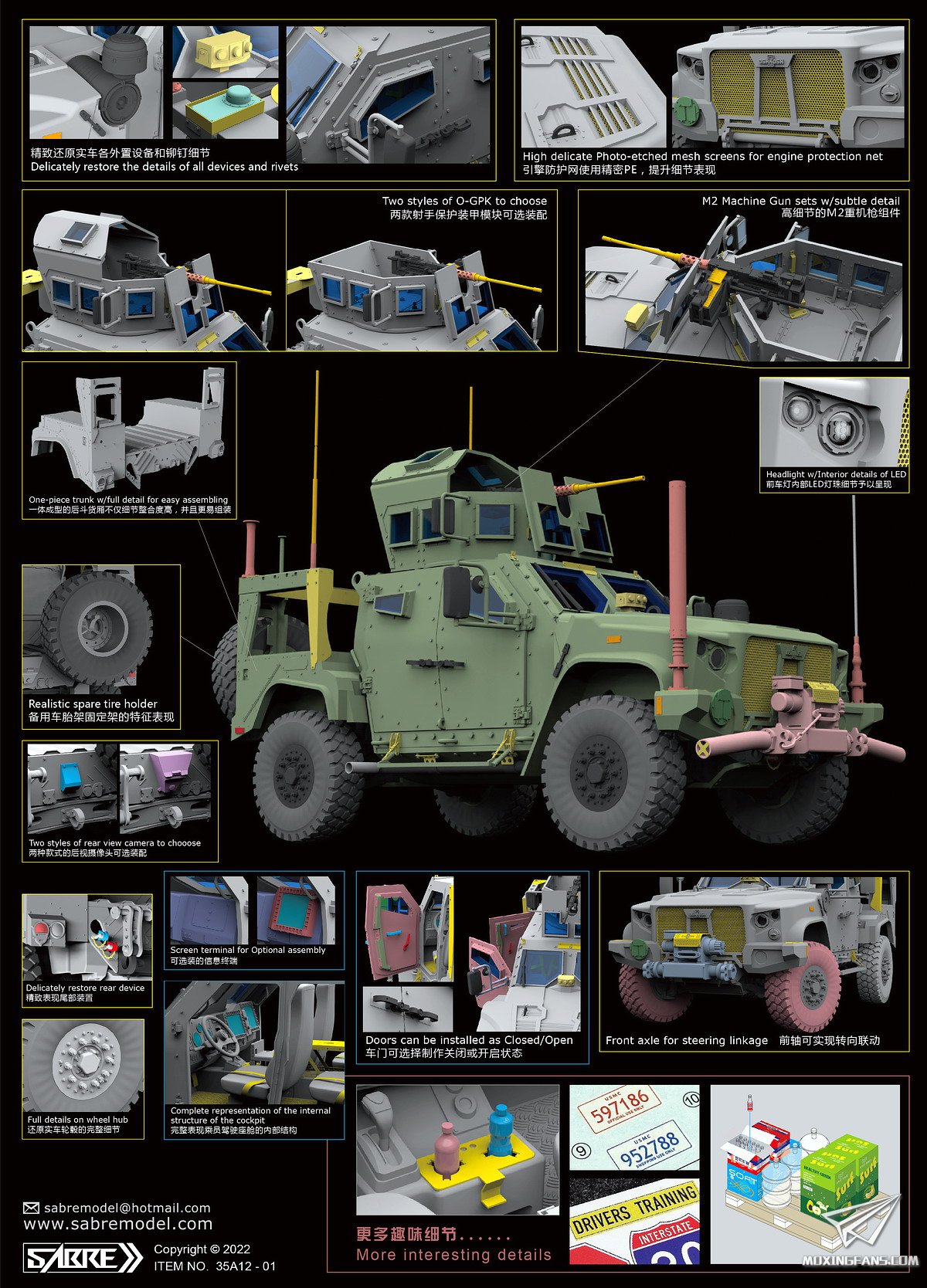 SABRE也发布了一款JLTV联合轻型战术车辆,型号为加装了机枪塔的重火力支援型。这盒套件为超值精装版,在附带基础的射出件的同时还附带了蚀刻片,金属管,金属天线,3D打印件,饮料瓶,木质拖板等补品,配置可谓一次拉满,此外还推出了附带3D打印重力轮的豪华版。这盒套件将于近几天开启预售,11月上市,精装版官价209,包含重力轮的豪华版官价249,价格很有竞争力,如此高配置的套件追求性价比的玩家千万不容错过 。