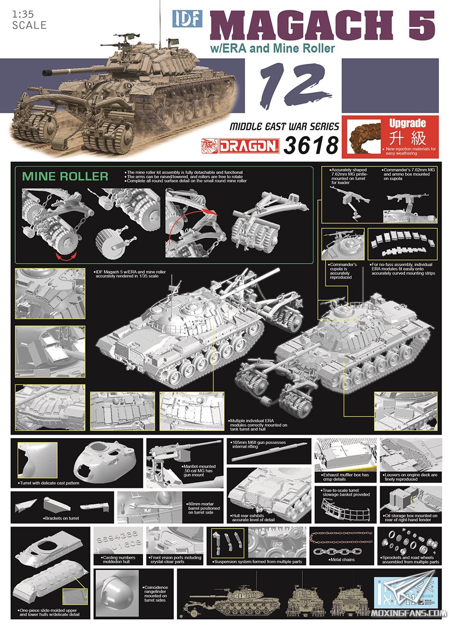 3618:1/35 以色列马加奇5主战坦克 附爆炸反应装甲&滚压式扫雷器 精密版