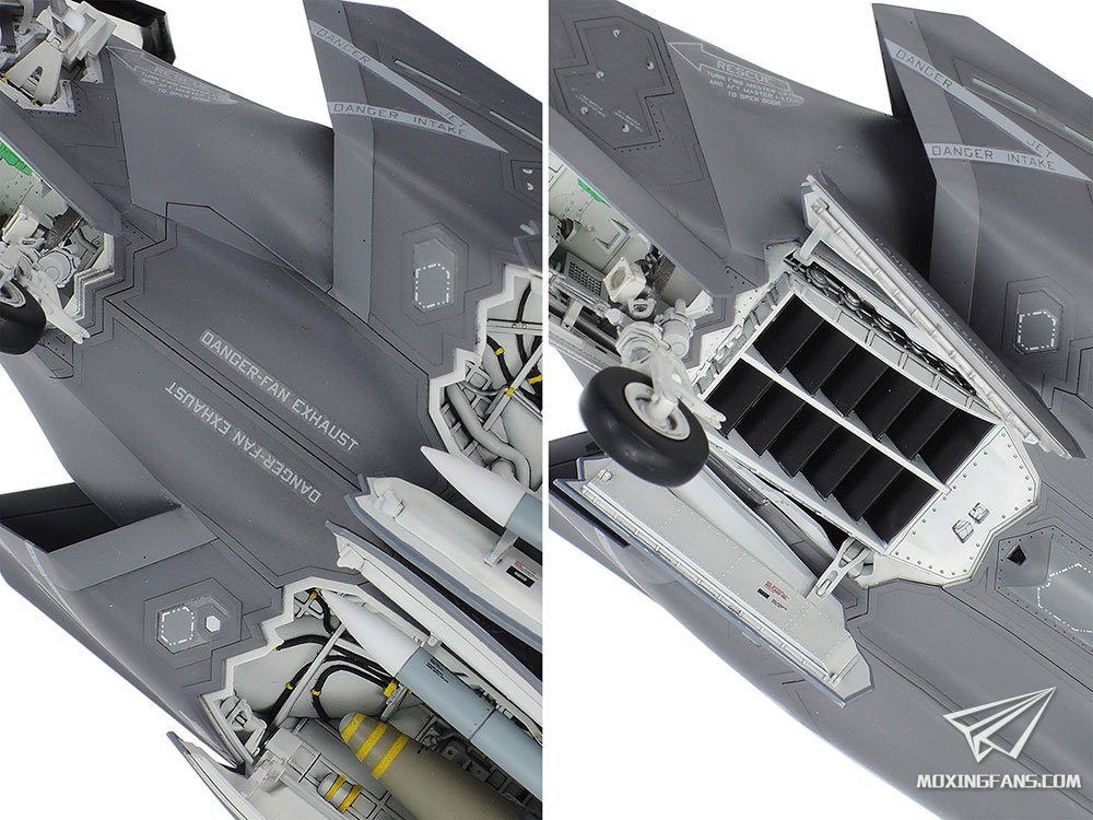F-35A与F-35B的舱盖在细节方面有所区别,套件提供了2个舱盖,可只作为开启状态或关闭状态。