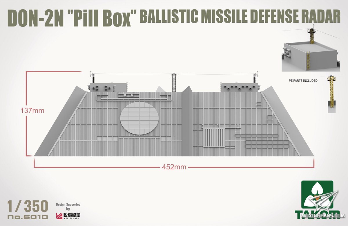 6010:1/350 DON-2N 弹道导弹防御雷达站 与悦高模型合作的产品;长452mm,高137mm;附蚀刻片;附A-235导弹系统。