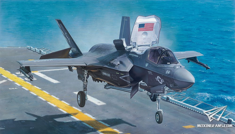 目前田宫只放出了一部分信息,图片也只有一张封绘,为田宫自己开模: 忠实再现了隐身战机的机身线条,机身表面的隐身材质蒙皮和轻微凸起的接缝。再现了发动机喷口向下,各处进气口打开的垂直着陆状态。提供停机状态和悬停状态两种起落架可选。提供AIM-9X和AIM-120C两种导弹。附带飞行员1名,悬停状态的展示架,5款涂装可选。 上市时间:8月,官价:4620日元