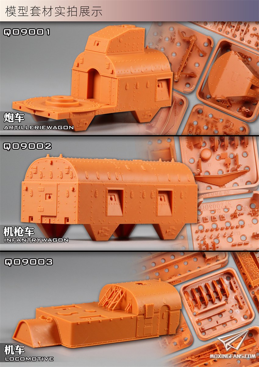 泉微模型发布了一款新品:1/72比例的勇敢号装甲列车。这款模型为全3D打印套件,附带蚀刻片和水贴,分为3款,组合后可成为一支装甲列车编队。