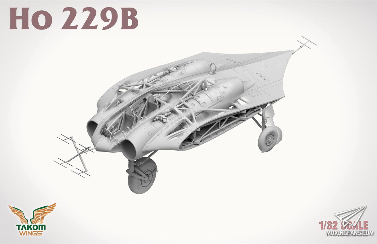 三花发布了3款Ho229系列系列新品: 32001 1/32 Ho 229A战斗轰炸机 附机身部分内部结构,可制作为停机状态或者飞行状态,附1名飞行员。