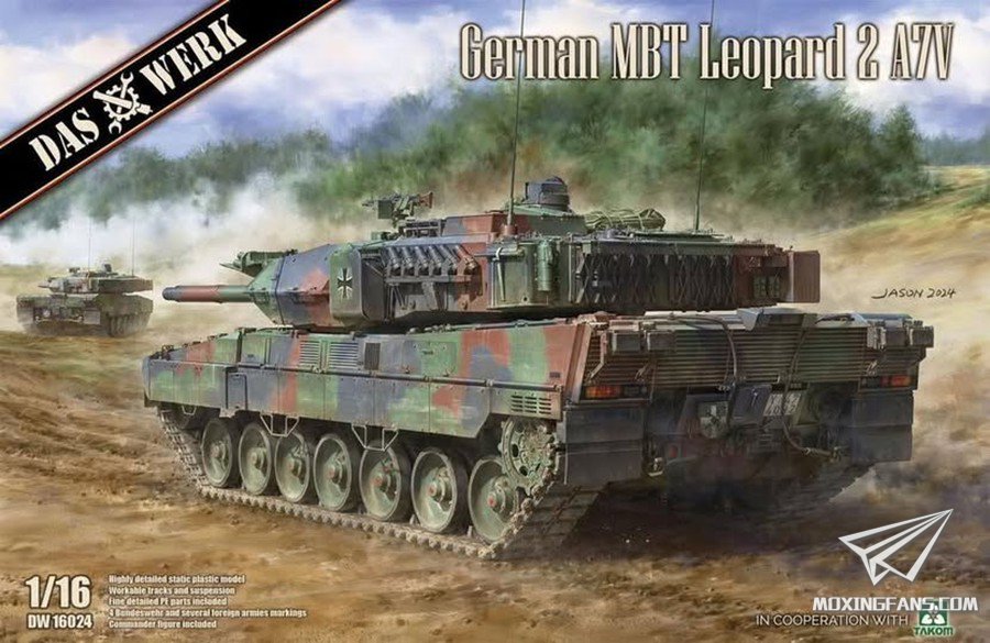 DAS-WERK发布了一款新品:1/16比例的豹2A7V主战坦克。这是DAS-WERK跟三花合作的产品,附带1名人形,上市时间未公布。