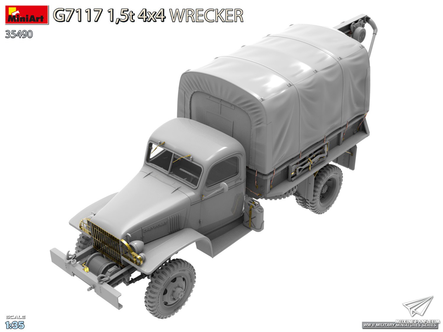 MINIART预告了一款新品:1/35比例的G7117 1,5T 4x4 抢修车。从介绍来看,这款新品附带蚀刻片和车棚,上市时间未公布。