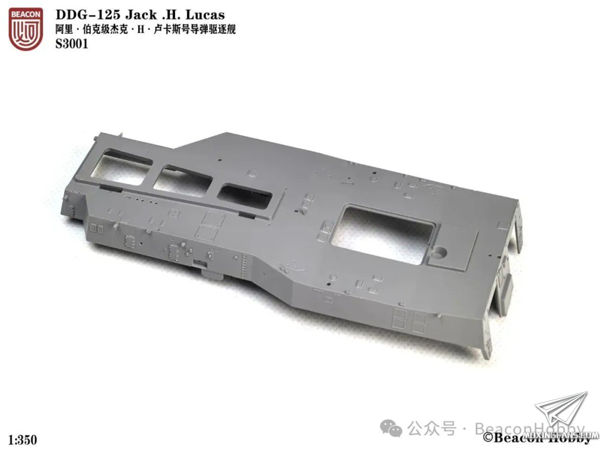 必可发布了一组阿利伯克级驱逐舰的第一次试模照片。试模一般分为多次,目的是发现模具的问题并在接下来的试模中解决问题。在这次试模中测试了舰底和舰身的组合度,检查了一体成型的舰桥,发现了球鼻艏的合模线问题,烟囱的注塑不良问题和前后甲板刻线过深等问题,并且会在后续的试模中修正。
