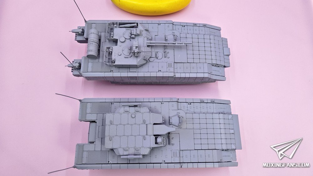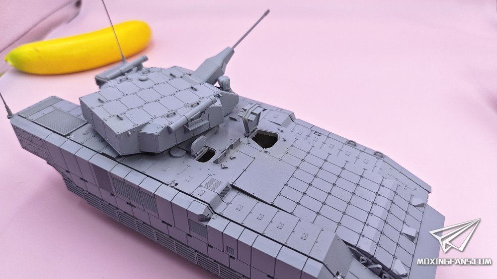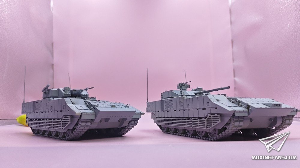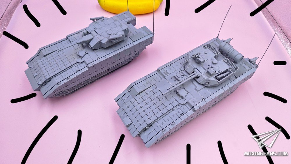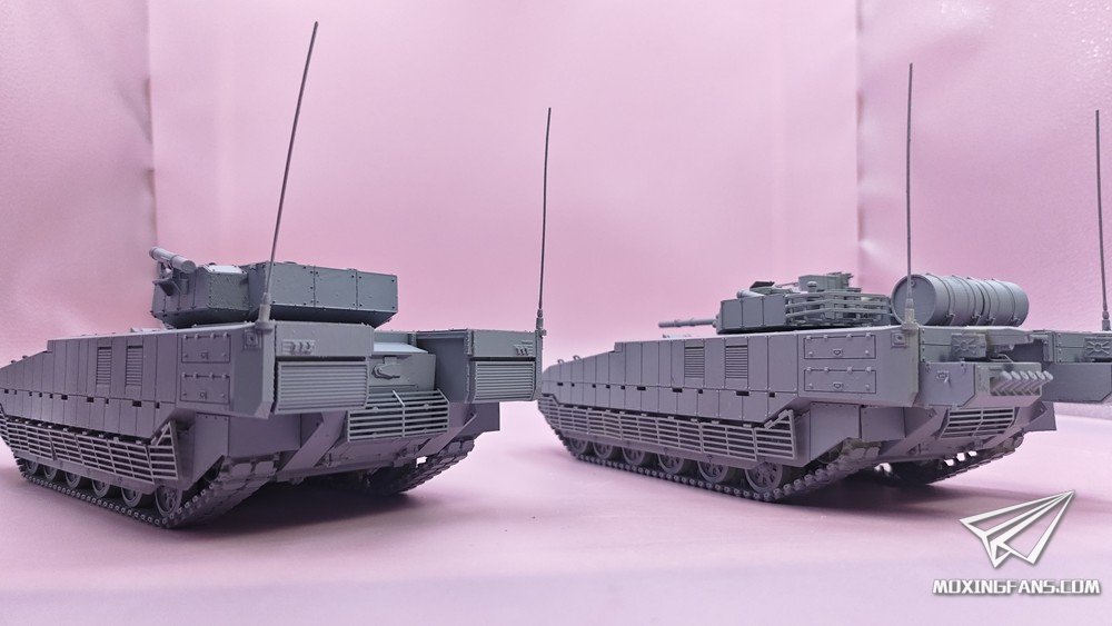 默认版本是0.1mm精度的高韧性树脂材质,可升级为0.03mm精度的微雕树脂材质。该型号分为两个版本:单30mm无人炮塔版本、100/30炮塔版本。炮塔均可动,主武器可仰俯,武器站可旋转,舱盖可开关。某宝重坦侠的杂货铺有售。