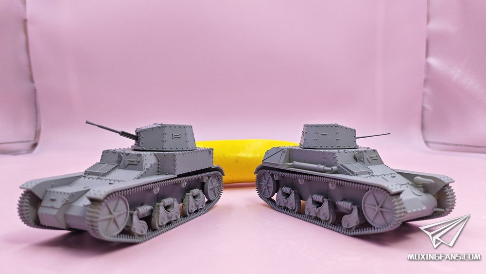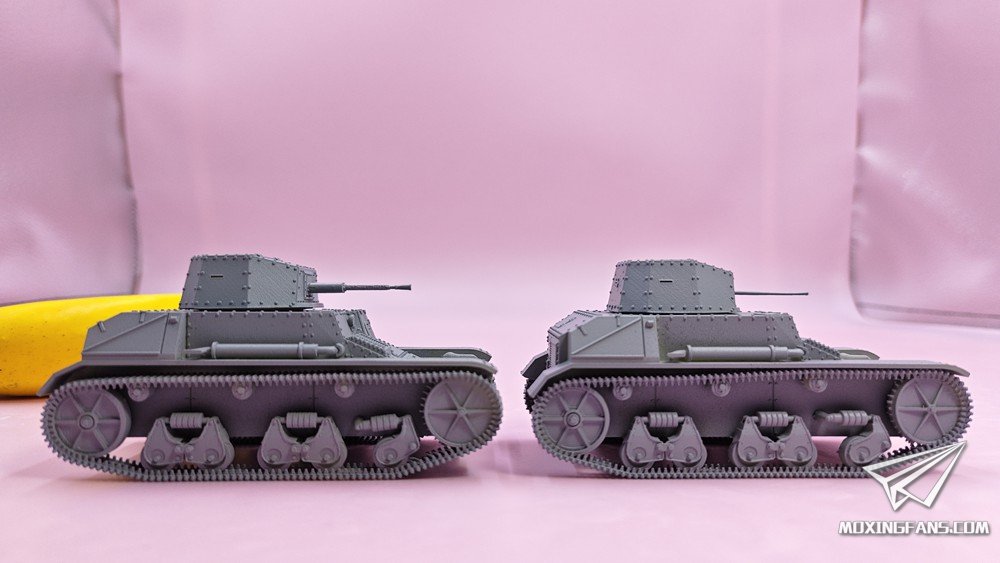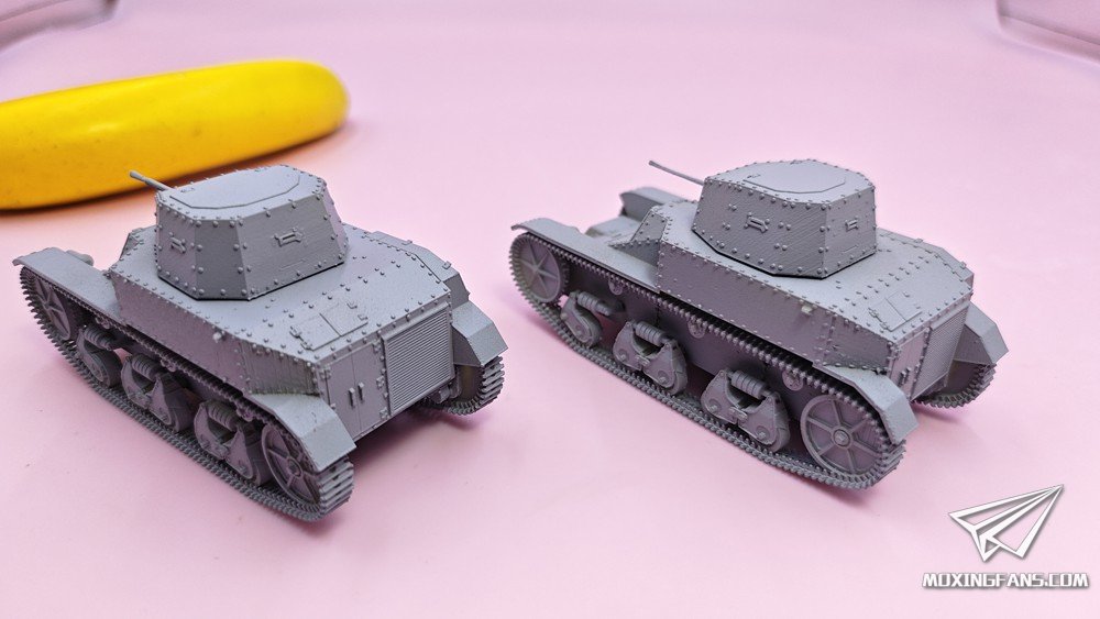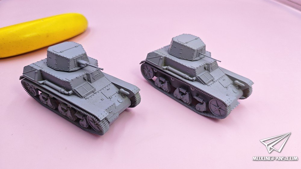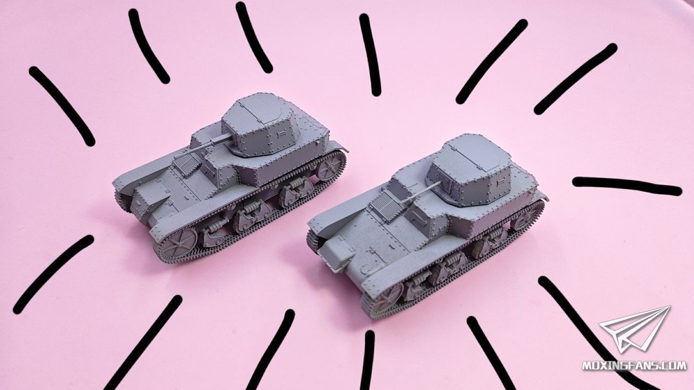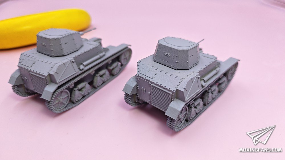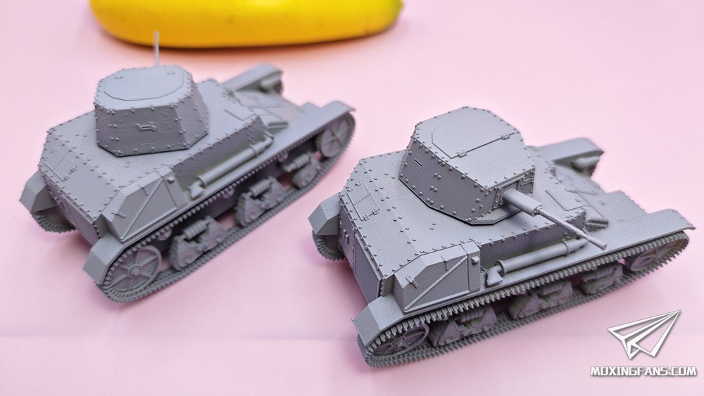 默认版本是0.1mm精度的高韧性树脂材质,可升级为0.03mm精度的微雕树脂材质。雷诺ZB是抗战时期使用的轻型坦克,模型分为两个版本:实验型(左)、量产型(右)。炮塔均可动,重机枪使用活动胶水固定,可小幅度仰俯。某宝重坦侠的杂货铺有售。