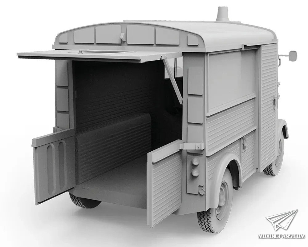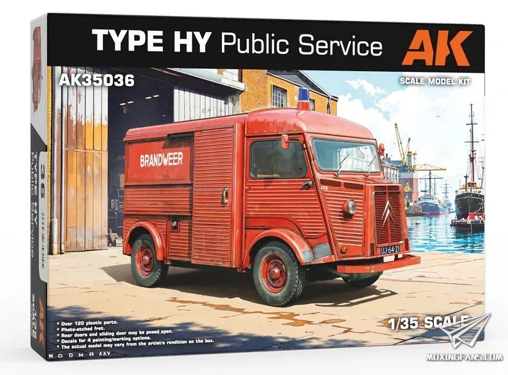 AK预告了一款新品:1/35比例的HY型公益服务厢式货车。 HY型货车雪铁龙公司推出的一款厢式货车,1947年上市。从介绍来看附带多款涂装可选,上市时间未公布。
