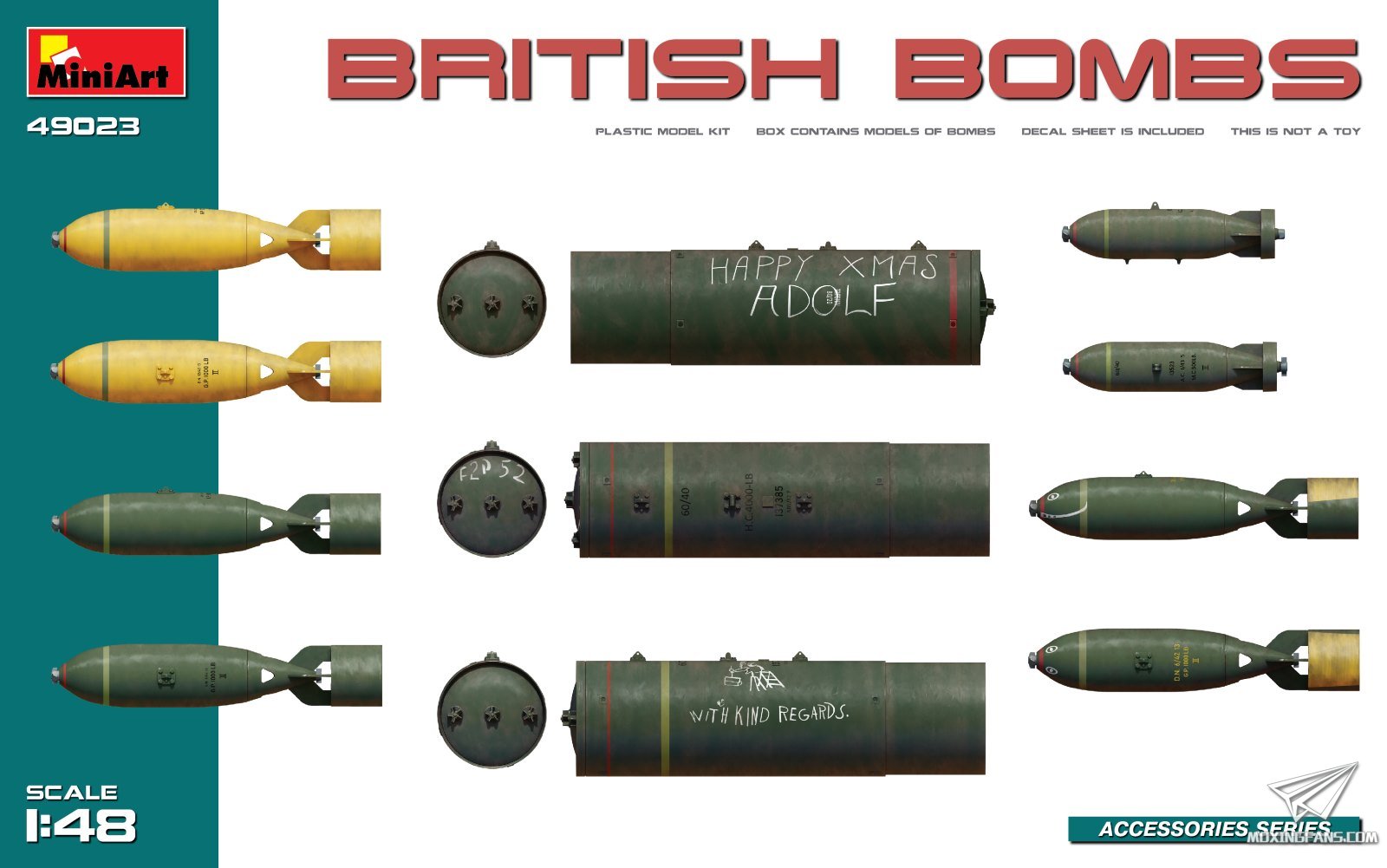 预告了一款新品:1/48比例的英国航弹套装。从介绍来看套件包含多款型号,附带水贴,将于近期上市。