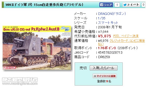 【威龙 6259】二战德国"野牛"15cm I号B型自行火炮日本再版预定