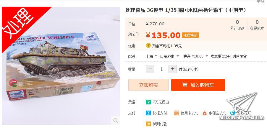 3G模型新上了一批威骏的德国水陆车,原价270元,而这些外盒破旧和较脏的只需半价,板件完好,对动手党来说是绝对的好价格。好吧,我承认这个东东冷门了一点。。。