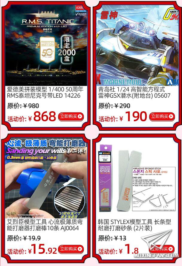 此外,英利模型还推出了一系列的活动,全场满99元包邮,限时抢购,加购活动等,有喜欢的千万不要错过。