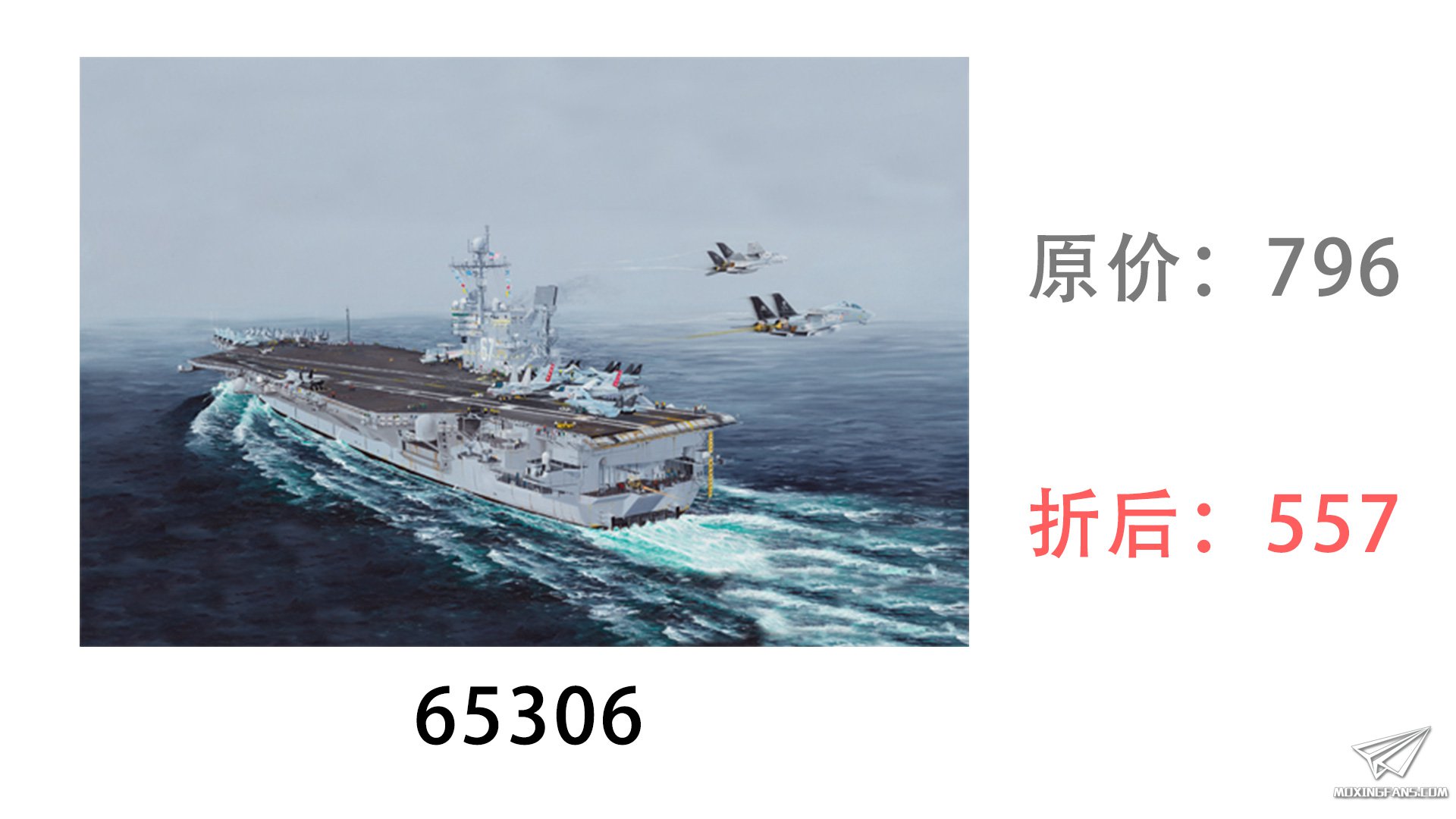 18,再来看两条1/350的航母,分别是现代的肯尼迪号和二战的约克城号。再350航母领域小号手有绝对的霸主地位,基本上没有竞争对手,有看中的闭眼买就行了。肯尼迪原价796元,现价557元,约克城原价605元,现价424元,四五百买350的航母,想想就刺激。