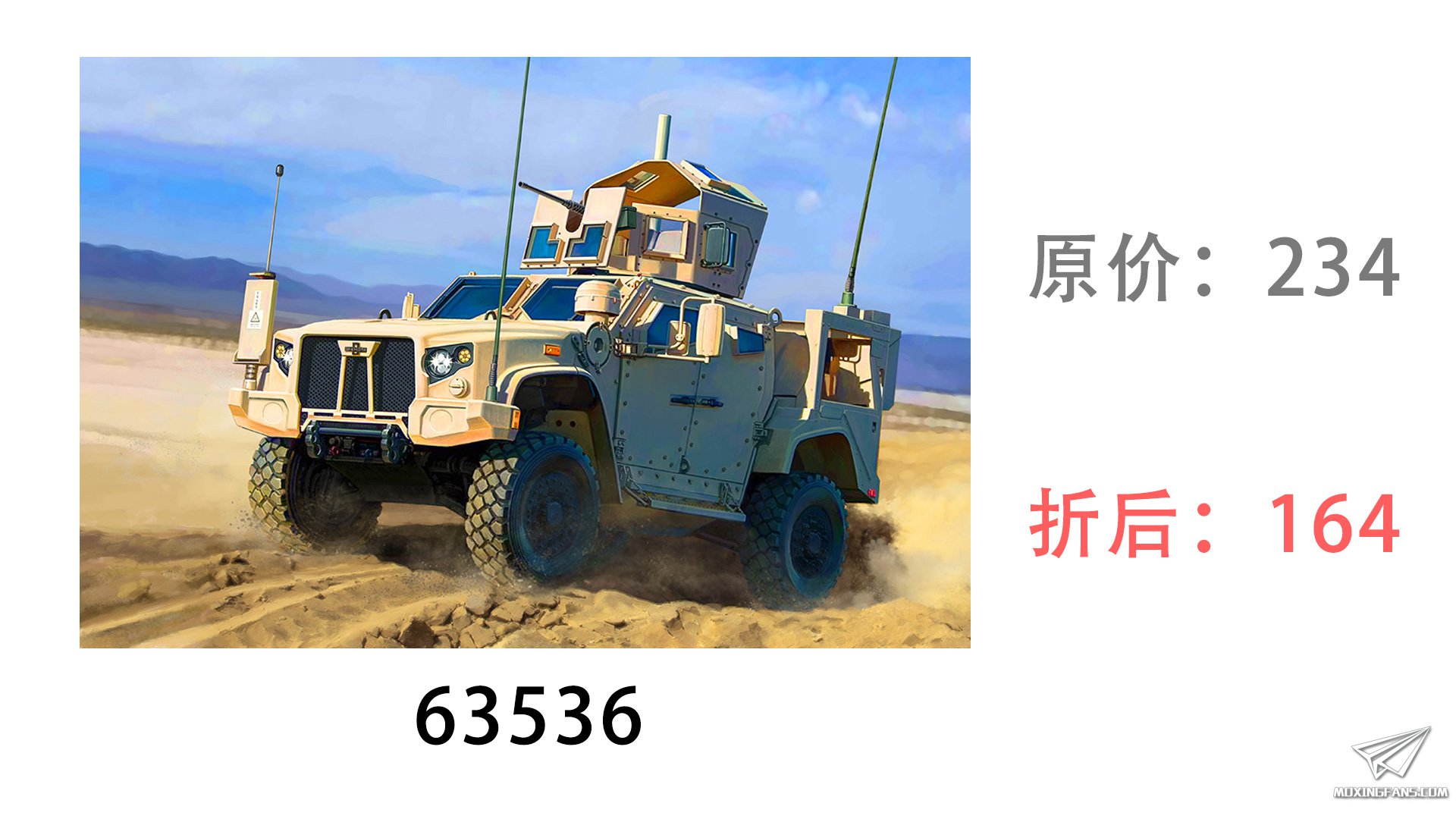 12,M911重型牵引车及64T拖板。这是小号手的又一款重磅产品,跟上一款M911的主要区别在于托板部分,2022年上市,作为当年和MENG打架打出来的衍生型号,这个系列还是比较用心的。整体来说M911也是走的孔武有力的路线,大量直线线条,很符合小编的审美,完成品长度超过60厘米,放在家里还是很震撼的,附带蚀刻片和软胶轮胎,不含发动机内构,原价455元,现价318元。
