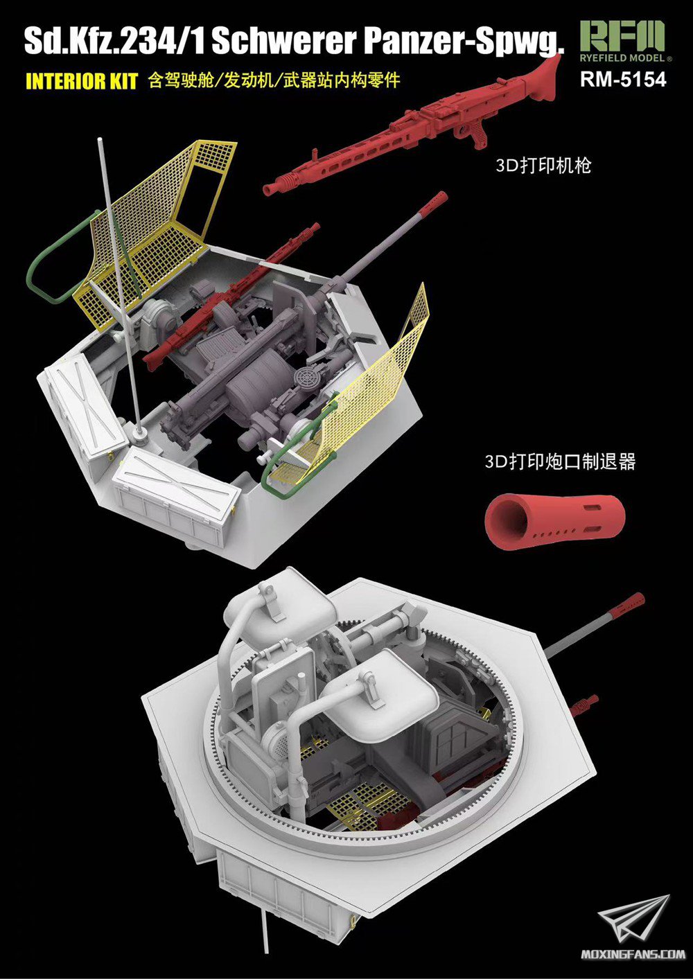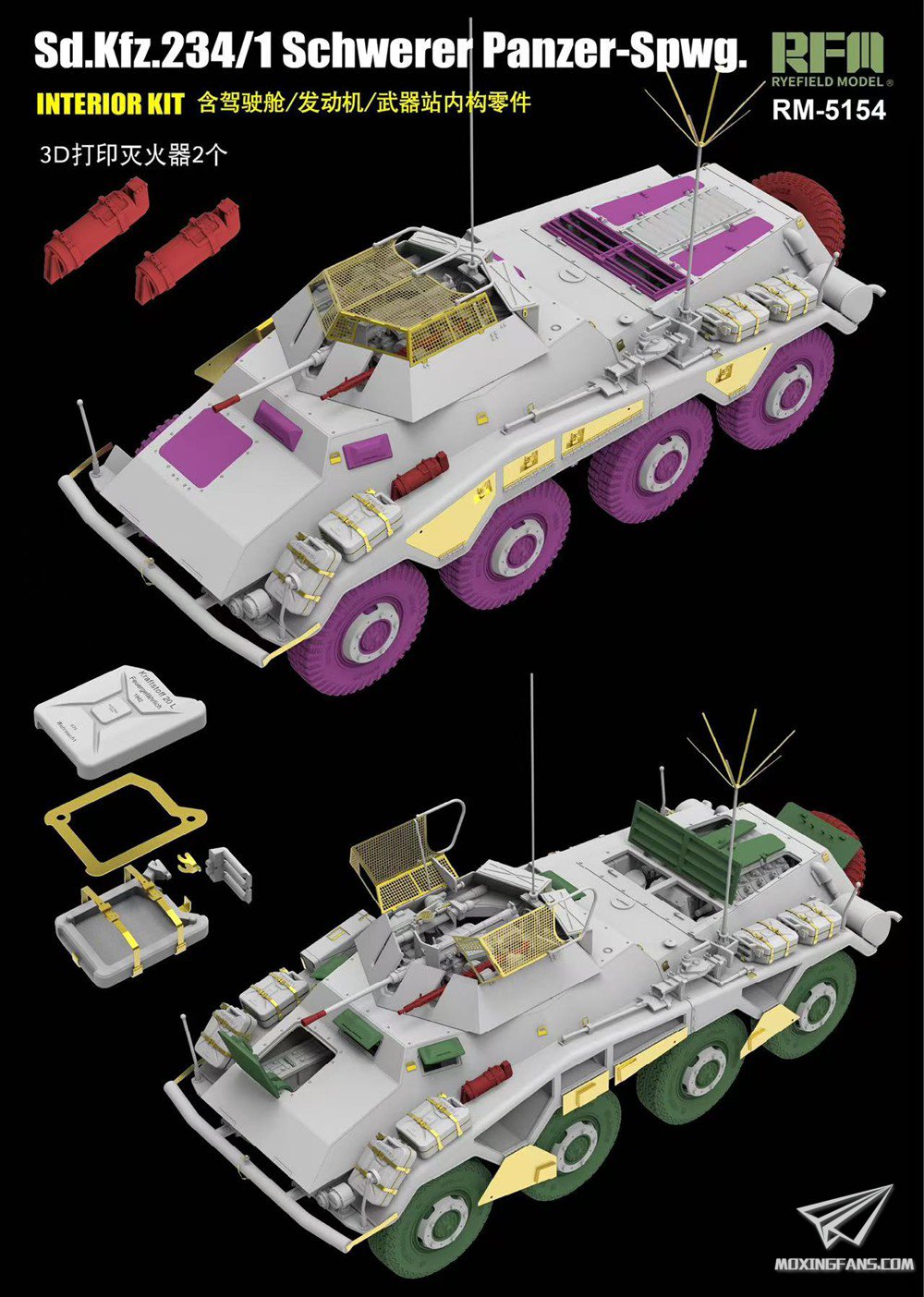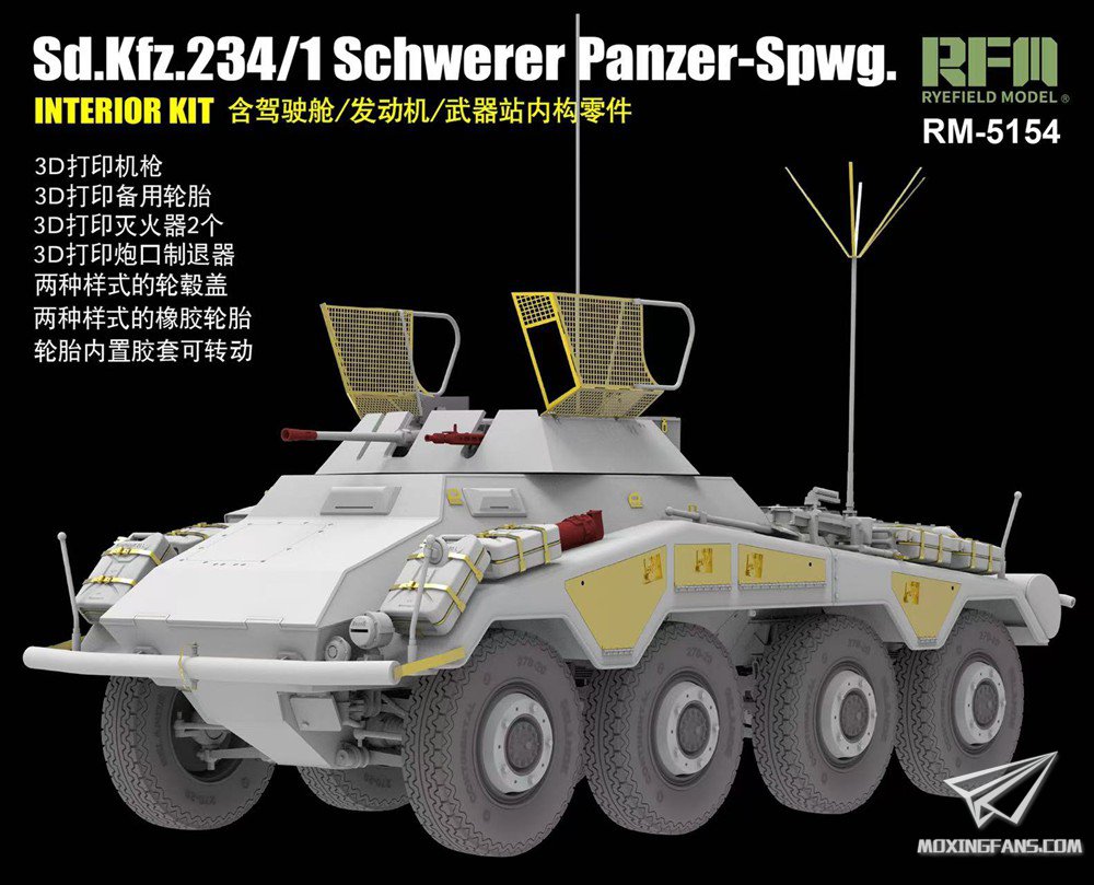 最后一款新品是234/1大八轮。麦田推出这个型号也是情理之中了,虽然不如234/2 puma和234/4长75的人气高,但是模具还是要充分利用的。从介绍来看,这款大八轮附带蚀刻片,3D打印零件和软胶轮胎,附带战斗室和发动机舱的内构,内构的丰富程度介于威龙和MINIART之间,官价是229元。 ![]() ![]() ![]() ![]() ![]()