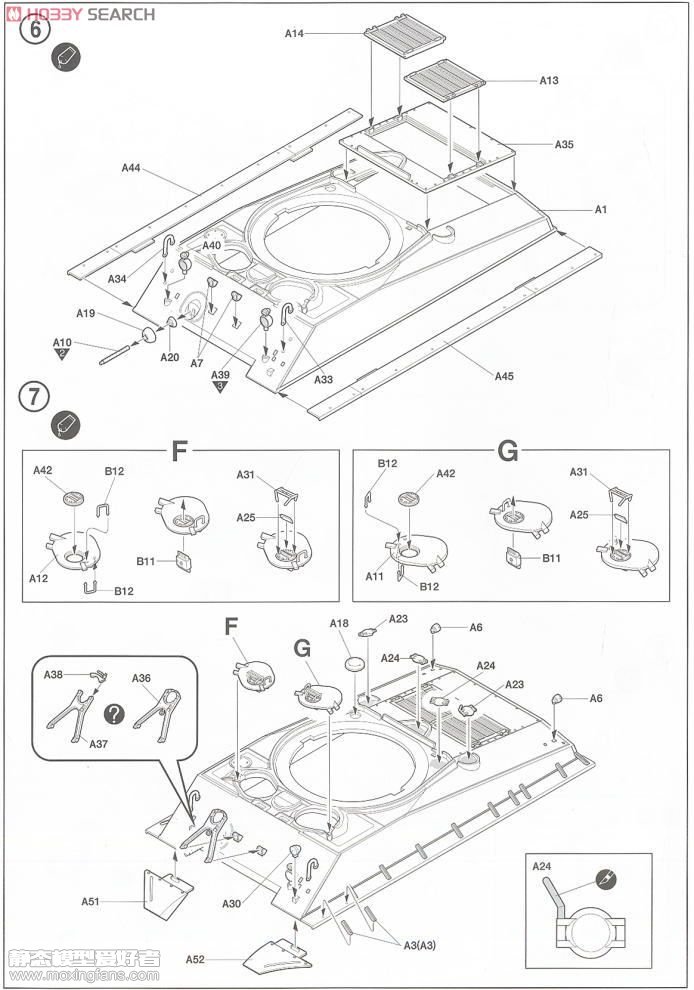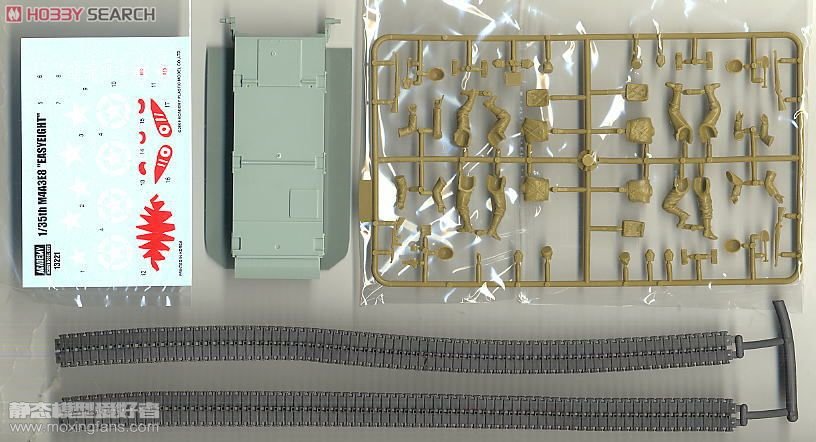 爱德美的这盒M4A3E8是2009年推出,使用了一些老版本馒头的零件,新开模的行走部分。就题材和性价比来说无疑是一流的,市面上的35比例M4A3E8,数棒子美的这款便宜,当初有货的时候只要120左右,还带一套MB的大头兵和简单PE,性价比无敌。就板件质量来说(定位于M4全系列),细节比不上TASCA和威龙的馒头,和田宫的馒头相当,比伊达雷利的馒头细节好不少。组合度方面没有太大的问题,考证也是马马虎虎。棒子美给这盒馒头配上了橡胶履带,这点比较头疼,市面上可替换的产品并不多。目前这盒馒头已经在某宝绝版,欧洲有再版的情况,不知道大陆是否放货。 板件图和说明书如下(部分来自HOBBY SEARCH):