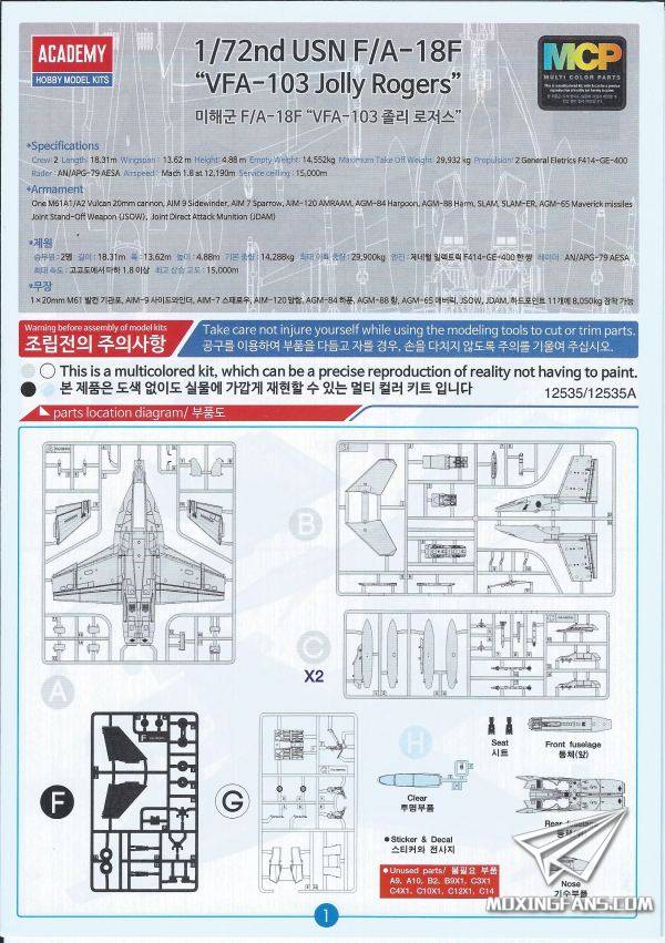 【爱德美 12535】1/72 美国F/A-18F VFA-103中队开盒评测(5)