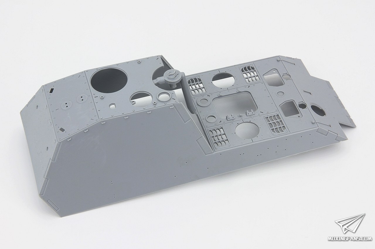 自从看到亚当大师自改的那辆突击熊作品之后(原文:30.5cm熊式自行火炮),小编就被毒到了,对这辆庞然大物的图纸车产生了浓厚的兴趣,只是苦于树脂件那高昂的售价只能YY一下而已。前段时间图纸题材爱好者Amusing和大厂小号手先后预告了自己的突击熊套件,让小编这个穷屌丝兴奋不已。如今Amusing的这盒突击熊已经上市,小编第一时间搞了一盒,Amusing究竟开的如何,就让我们一起来看一下吧。 ▼ 首先就是一体式开模的上车体,无比巨大,私房钱新去处。