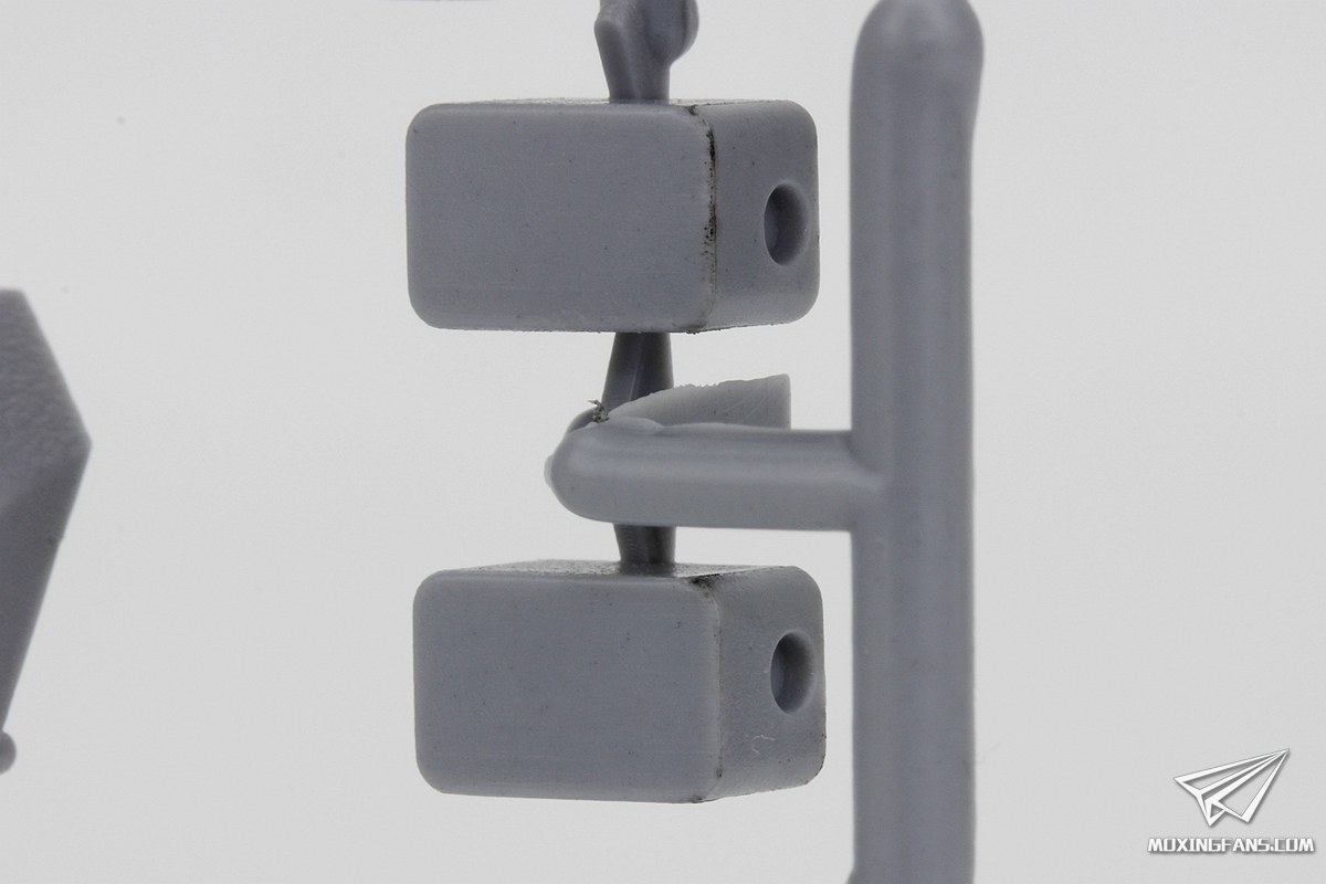▼ 套件中还给出了两只吊臂零件,选装在炮塔两侧。小编这盒有轻微的缩胶现象出现。