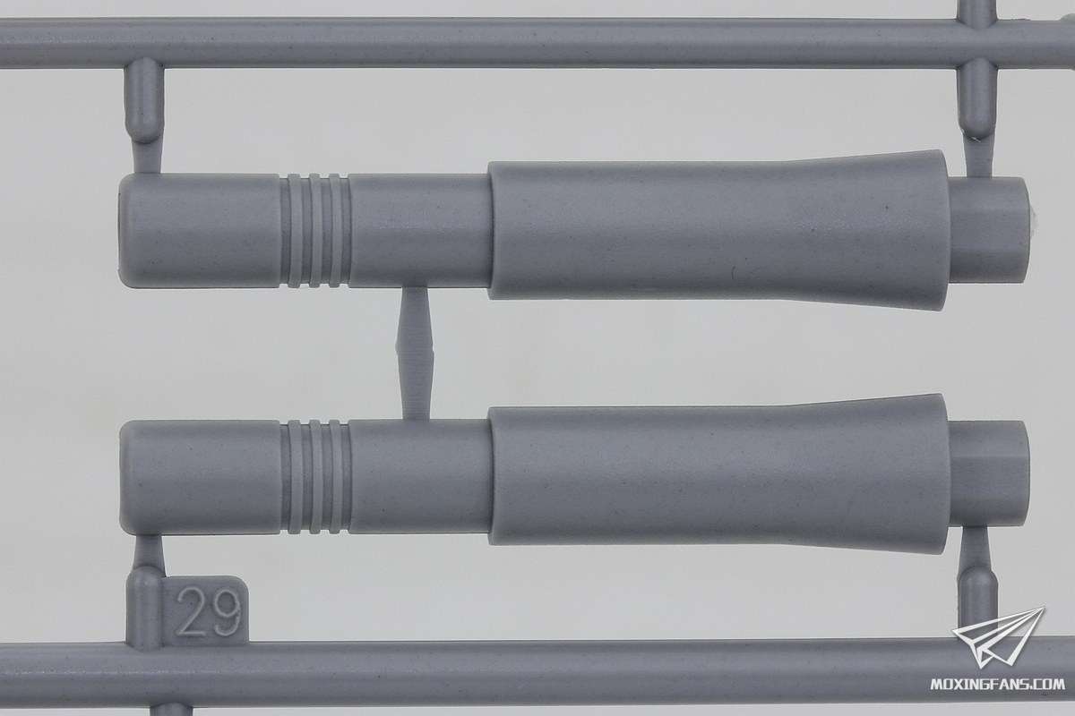 ▼ 双联装火炮被拆分成两段,每段都是整体式开模,省去了制作无缝的繁琐,炮口并未开出膛线。