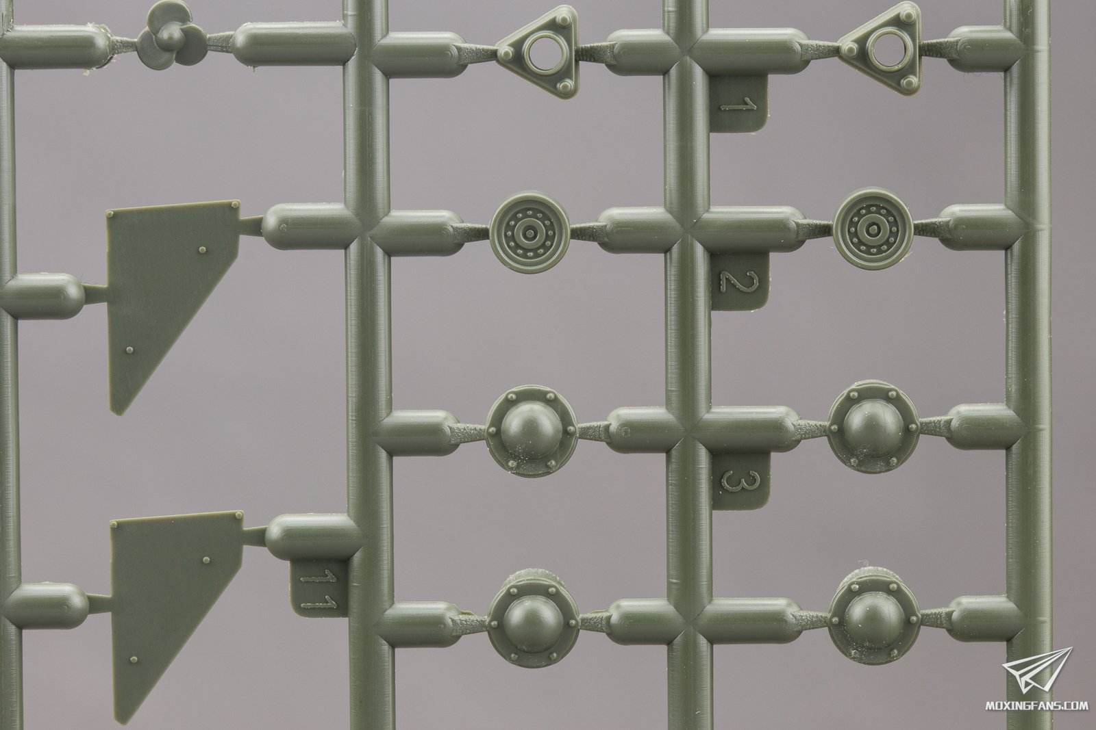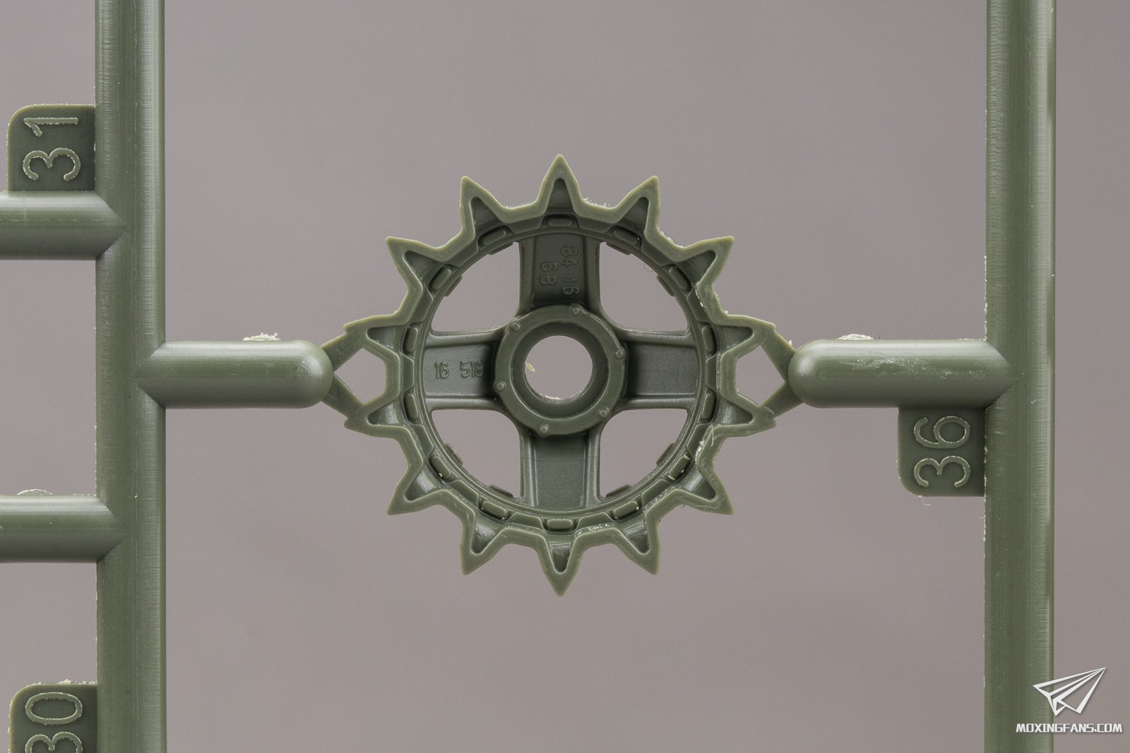 ▼ 行走部分的细节,主动轮,负重轮和导向轮都开出了细小的文字细节。