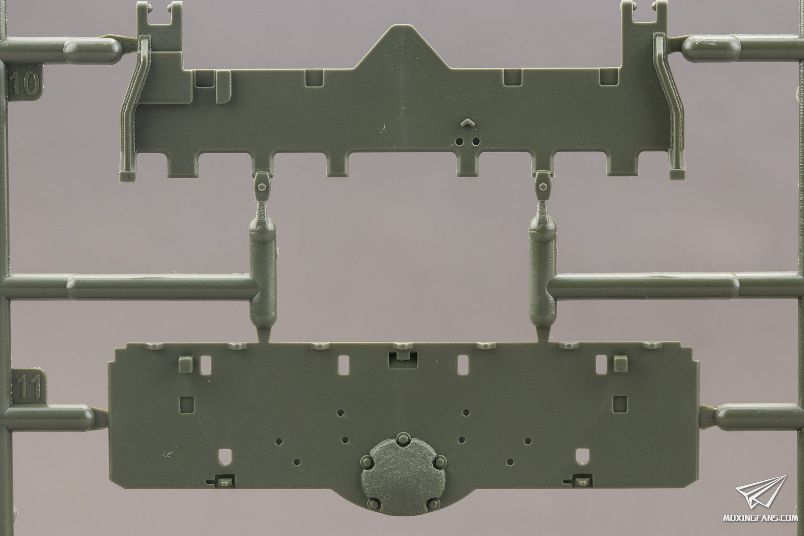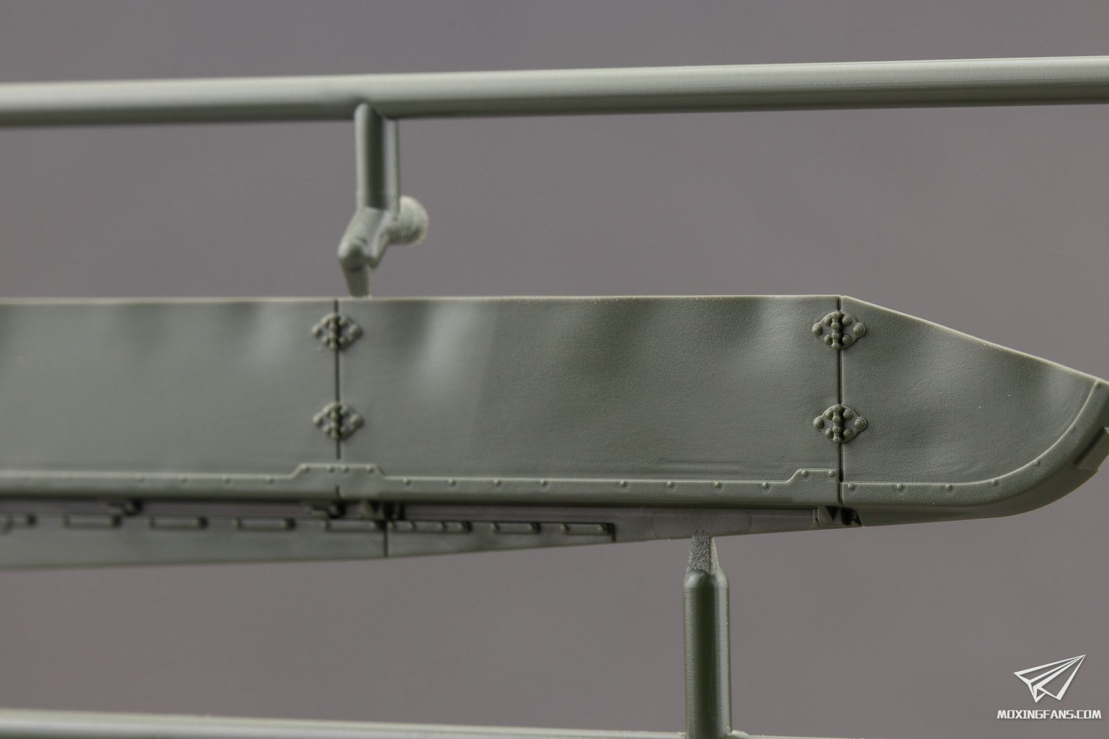 ▼ 车体主要部件的细节,相对于以前的老产品,这盒T-72焊线的表现有了很大的提升,工整而细腻看上去非常漂亮,侧裙的橡胶裙板开出了起伏感,并非缩胶。