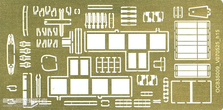 ‘亨伯’侦测车正式于1943年服役,虽然太迟未能参与北非战役,但却广泛使用于稍后之意大利及西欧战线。由于此车性能超卓为英军各不同部队如装甲兵、炮兵、工程兵等争相采用,除英国本身外当时还供应其他盟国如加拿大及波兰等部队使用。 1945年中欧战结束后,’亨伯’侦测车也正式停止生产。随后此车部份遭解体或出售至丹麦、法国,荷兰、比利时及其他英联邦国家如马来西亚等部队使用。在上世纪50年代末中南半岛之战中,此车也曾替法军立下不少汗马功劳。直至现在在各国之军事博物馆中还可见到此车之展品保存得非常良好状态。 威骏曾经在2007年推出过这款编号为35009的的亨伯MK1,作为威骏的早期产品,套件采用的墨绿色材质的塑料,细节和组合度尚可,开模方面也没有像后期产品那么繁琐。就题材而言,洗掉了SKP的同型老货,如此冷门的题材也能撞车也是醉了。套件中的零件并不多,不包括车体仅有4板零件,带有5条橡胶轮胎和不小的蚀刻片,1个树脂兵人,涂装比较丰富。这款模型已经绝版多年,近期威骏又推出了编号为CB35009SP的同款模型,其中增加了一套英军兵人,其实就是相当于老货增配再版,喜欢的模友可以下手了。另外,这辆小车的尺寸非常小,只有10cm多一点,大车控们留意。 板件图如下(部分来自PMMS):