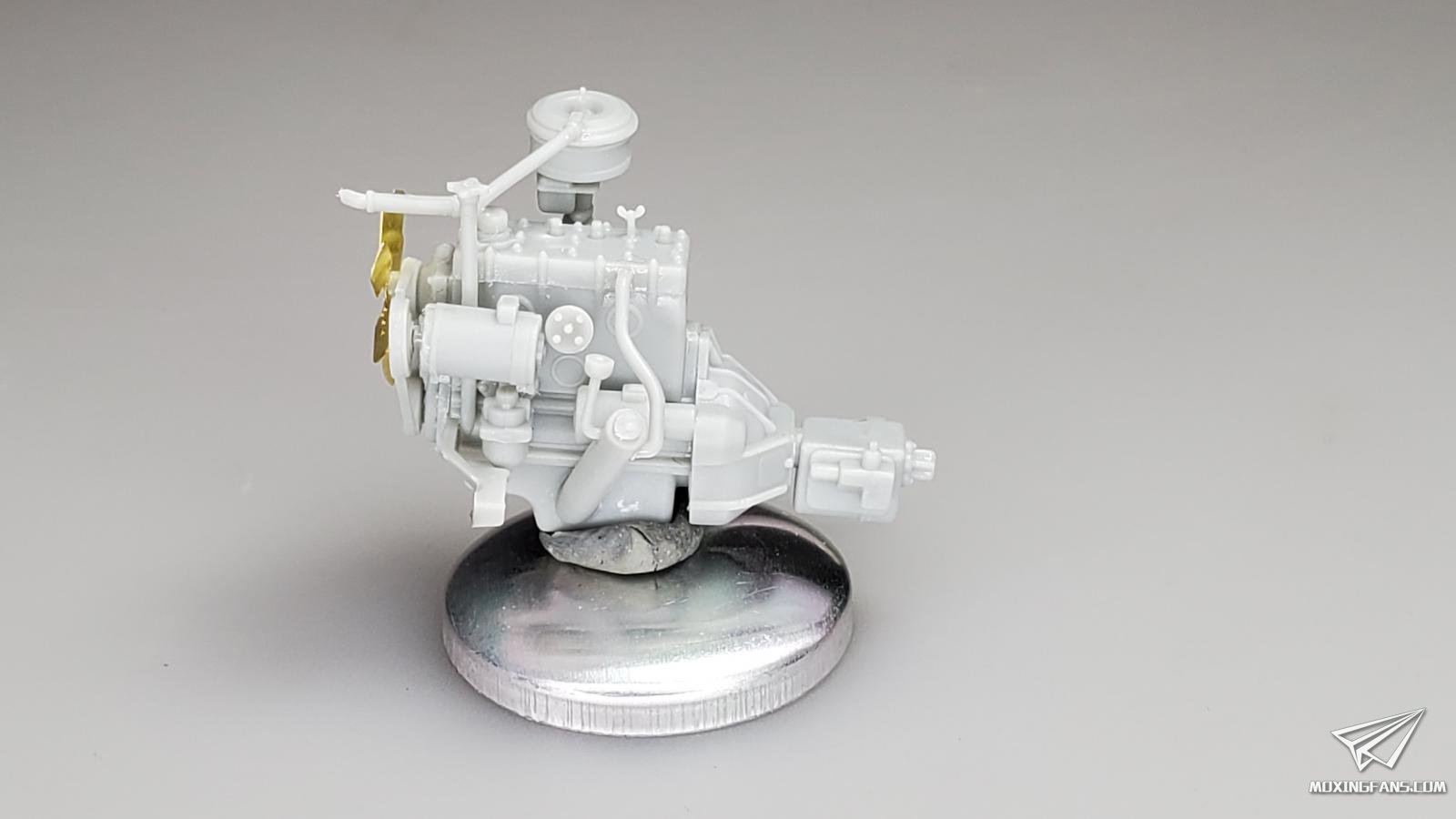 本次测评的威俊套件,开模细致,细节非常不错。 1.发动机部分 此部分一共42个塑料开模分件,加上蚀刻片和一些重复射出件共计48个零件,管线细节丰富,制作起来也比较繁琐。在组合的时候,要注意的是很多管线的定位模糊需要玩家多采用假组方式验证,其次是个别件没有定位,也需要假组。假组之后又有一个问题出现就是在安装进车架后已固定的管线与车架结合部位会发生错位,需要再次调整才能基本准确的粘合,比较考验基本功,好在完成之后的细节还不错。