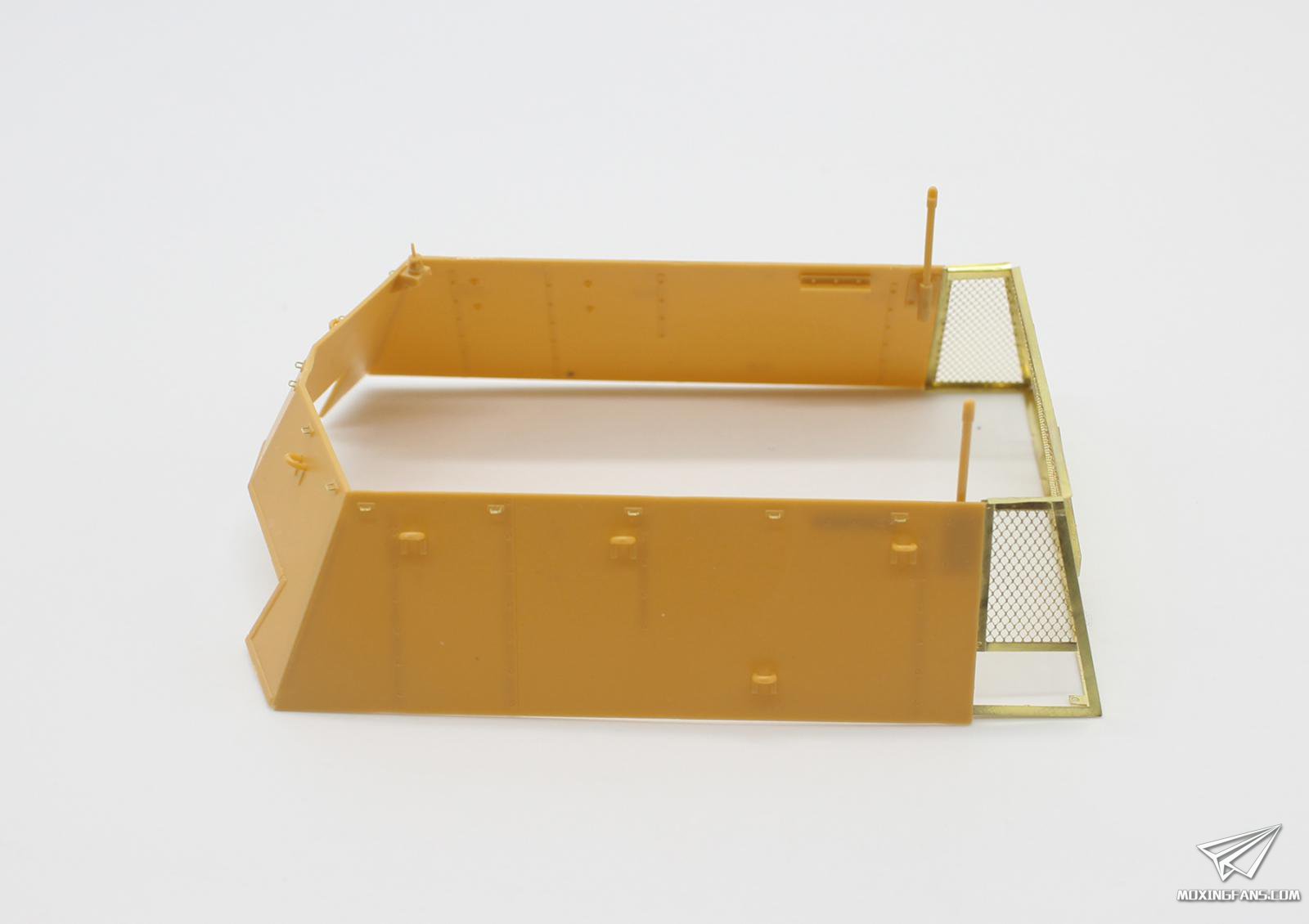 装甲后部的格栅,纯蚀刻片,因蚀刻片材质较软,还带有一定角度,制作稍有难度,配合蚀刻片台钳会事半功倍
