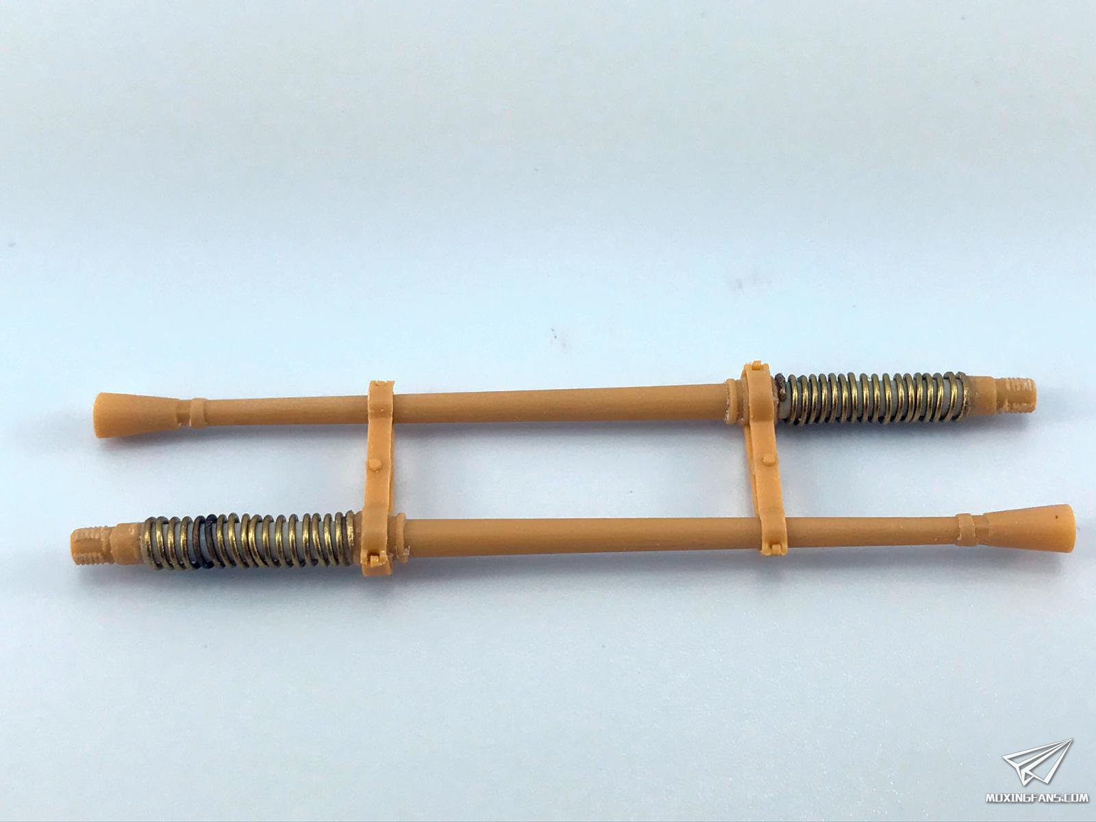 车身备用炮管,个人建议有条件的情况下可以更换,塑料模具的限制其弹簧部份有很深的合模线,清除的工程量很大。本来订购的是aber的炮管,因为疫情关系迟迟未到,时间关系我直接切除弹簧部分手动缠绕了下,手艺差效果不是很好