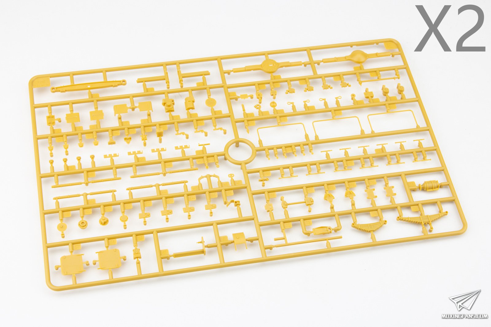 地雷一向是种对付步兵及无装甲保护车辆的极佳武器,而这种威胁在伊拉克和阿富汗地区被叛乱力量提升至最新的水平。由于经常受到地雷及简易爆炸装置的袭击,因此美国的保护力量公司制造出一款专门清理地雷及爆炸物的装甲车叫‘大水牛’除雷防护车或MPCV,它的基本设计是在一辆6x6卡车上装上特别的装甲身体。其外形的设计让乘员组的座舱可抵受特大爆炸的冲击波。这车可装载乘员2名及4名接受过训练工程操作人员探查出设置在路边的地雷和简易爆炸装置。一具30尺长能灵活伸缩功能的挖土臂可让乘员安全地于车厢内轻易遥距移除可疑的路边设备。此车的动力是由一台330kw Mack AI-400引擎所提供,可让’大水牛’以时速104公里巡逻450公里的范围。作战重量是25,000公斤及有17,000公斤负载容量。自2004年以来美国军队大约拥有200台'大水牛',而英国军队则有18台,加拿大15台,法国5台,意大利有6台。 在威骏的产品序列中,现代美军装备的M1114系列无疑是其中最为热门的产品之一,而另一款比较热门的套件就是大水牛系列了。作为现代美军装备的专业防雷除雷设备之一,大水牛自服役以来就凭借其独特的外形和优秀的保护性能在军迷中俘获了大量的粉丝,而且还是当年热门电影《变形金刚》中碎骨魔的原型,但是苦于市面上没有相应的模型套件可选。威骏在2012年推出了这款全新开模的大水牛套件,表现的是2004-2006年生产型的状态,恰恰对应了伊拉克战争题材,下面我们一起来看下这款大水牛开模如何。 ▼ 板件为黄色PS塑料,对于一辆轮式车辆来说零件数量是偏多的。配有一张蚀刻片,轮胎为射出件材质。