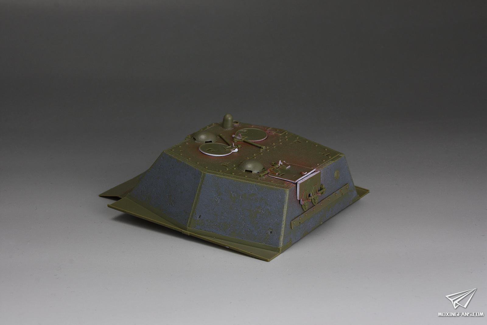 装甲板的切割纹处理得不错,焊接纹是正确的,装甲板之间凹进去,而这轧制钢板的表面处理就一言难尽了,笔者用补土层处理了下。