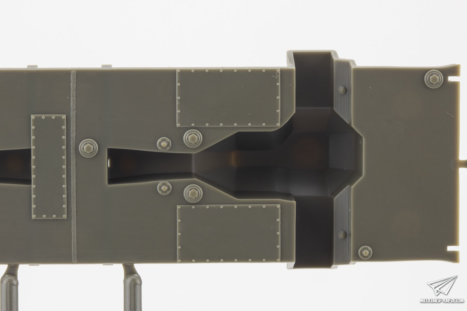 ▼ 车体和悬挂的细节。车体为多片式组合的样式,细节还算比较丰富,螺栓等细节表现的也较为锐利,但是和威骏大多数初期的产品一样,焊线的表现不尽如人意,总是感觉不够自然,有些假。