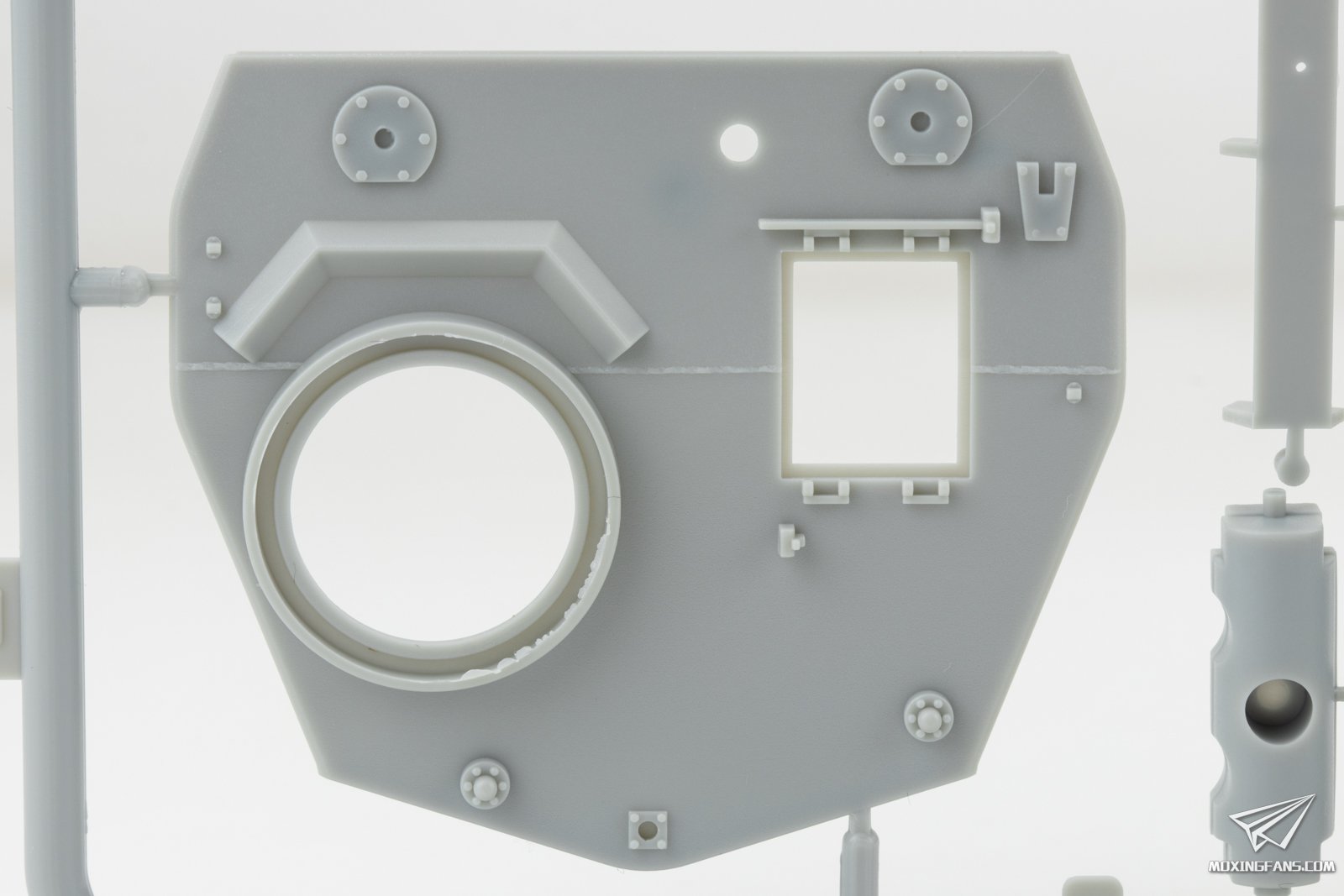 ▼ 炮塔并非一体式开模,而是采用了多片组合的样式,开出了部分炮尾结构,炮盾开出了铸造编号的细节,炮管为两片式开模。