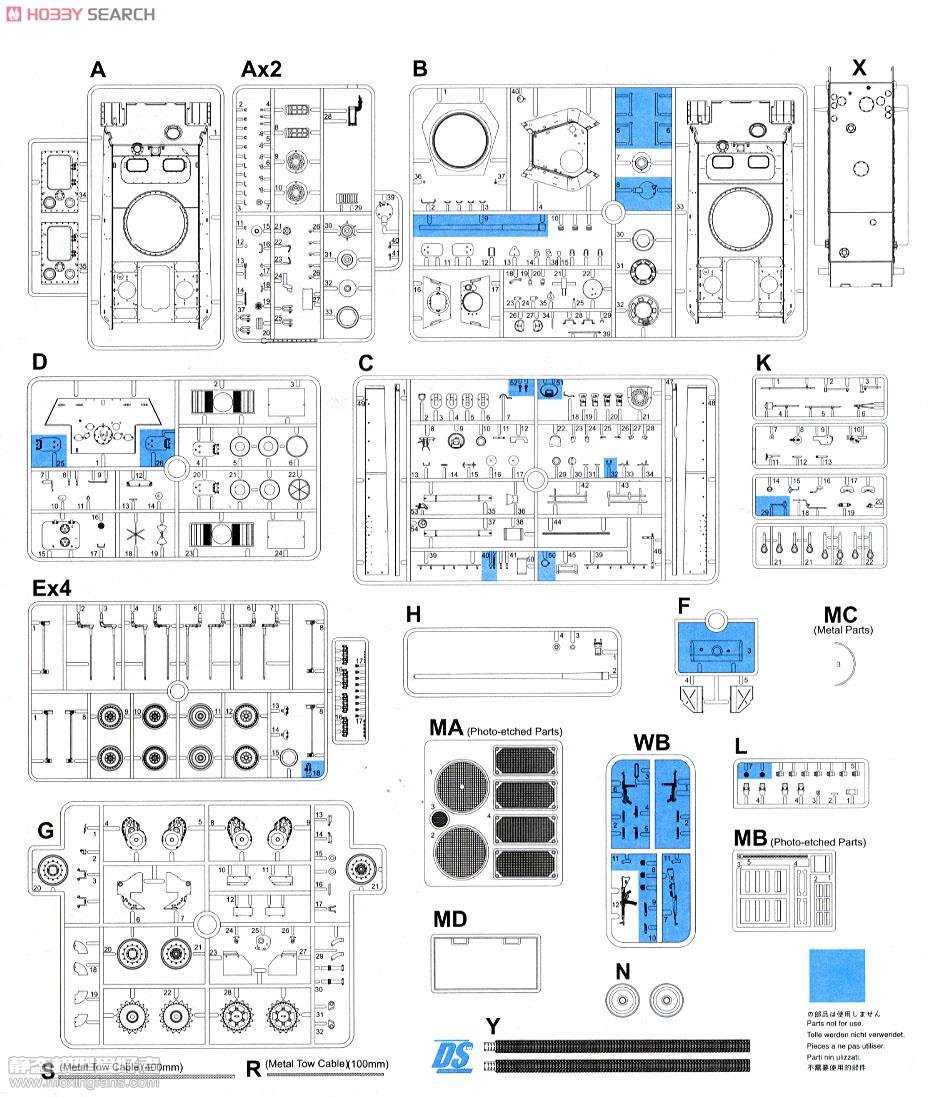 完美再现拥有75mm L100火炮的黑豹F车型 准确的炮塔细节,缩小的狭形炮塔减少了着蛋面积 配有防爆网蚀刻片 DS履带 板件图和图纸如下: 来源:1999 牙签豹,基本就是6403换了炮? 共 2 页 <12>