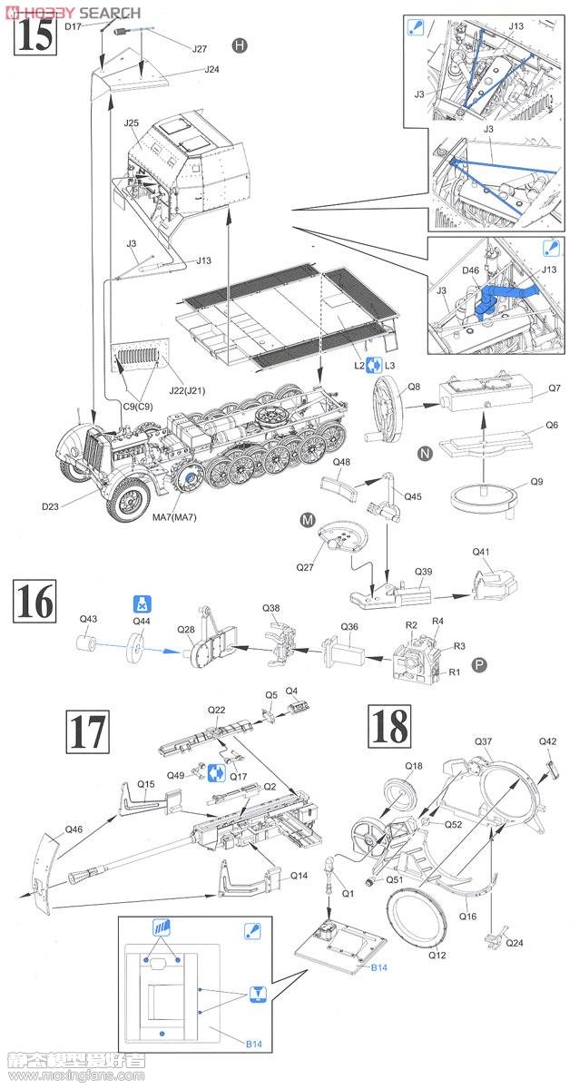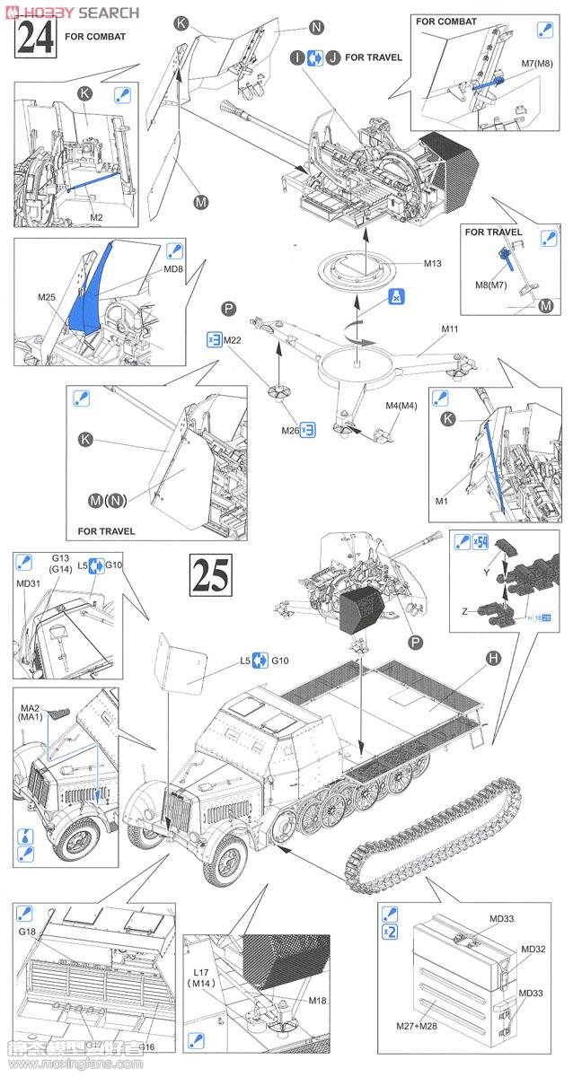 【威龙 6553】德国Sd.Kfz.7/2 8吨3.7cm Flak 43对空炮板件图和说