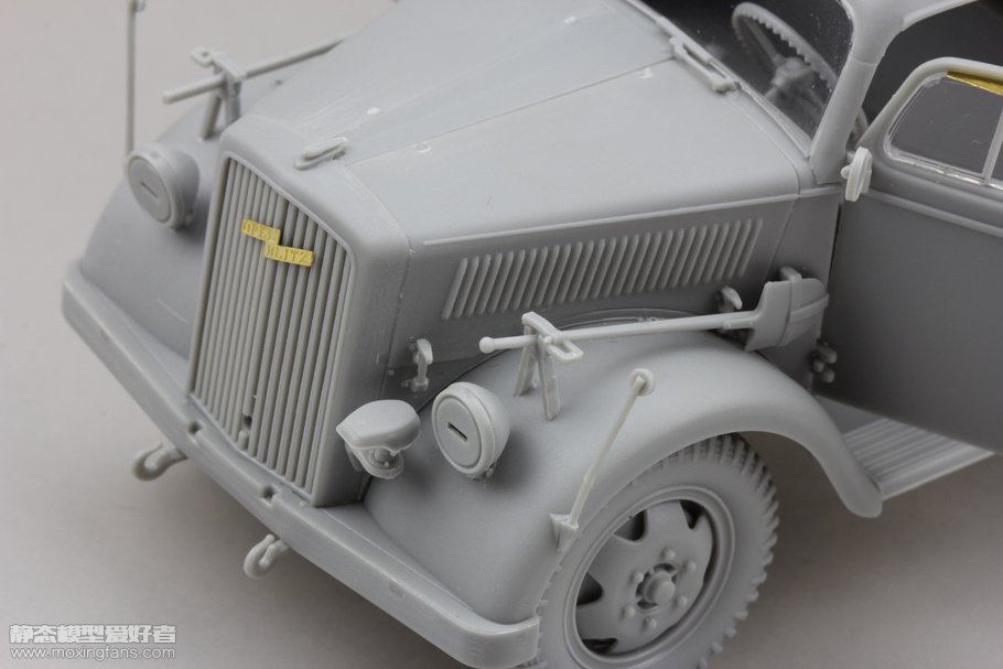 素组完成效果图,车门为假组状态,车顶的警示牌为套件中自带,但是并未给出定位孔,需自行定位。