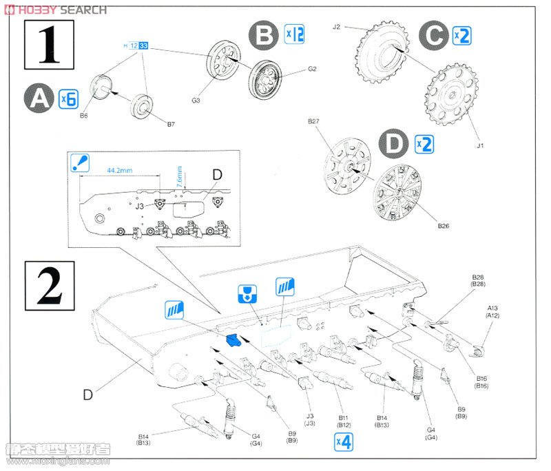传奇人物米歇尔魏特曼成为虎式坦克车长之前就是三号突击炮的车长,1941年在一场战役中,魏特曼曾经指挥一辆3号突击炮单枪匹马突击8辆T-26坦克,并且击毁其中7辆!WOT中的魏特曼勋章就是这么来的。这次的橙盒毫无意外还是老版件,带一个魏特曼的兵人,不过给的是拼接履带有点不厚道。不过这这个橙盒却送了一套不错的兵人,在大师手中这盒兵人的表现力很好,都比较推荐,那小编也推荐一下吧! 板件图和说明书: