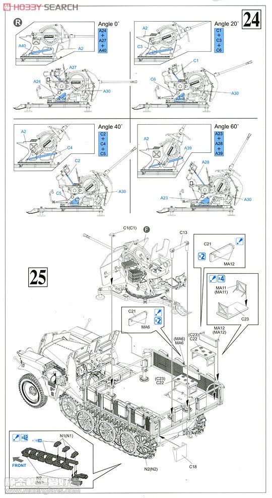 【威龙 6677】德国1t半履带自行2cm防空炮车板件图和说明书
