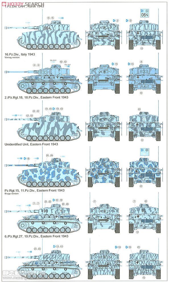 威龙的这款四号本身非常不错,开模锐利,细节精确,组合度也是非常好,带有金属侧裙和炮塔裙甲,套件中还自带L43和L48炮管,可以说是一盒2in1,完美还原库尔斯克的四号,可谓四号G的决定版。但是威龙在上次再版时,将魔术履带换成了DS履带。说实话威龙你阉割了我也就忍了,谁让市面上的四号就你的最好呢,咬牙收了,找别的四号杀履带。但是到手一看就傻眼了,竟然没水贴!小编我欲哭无泪啊,威龙你是在耍我的吗 2014年再版的那批更换了DS履带,2016年再版的那批又换回了魔术履带。 素组评测请参考:【威龙 6594】德国四号坦克G型1943年型评测(素组) 板件图和说明书: