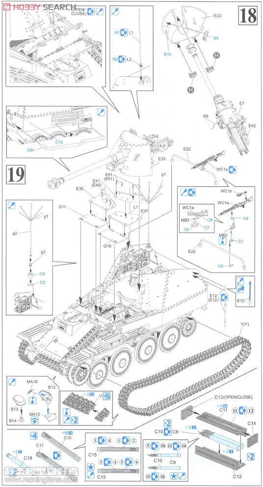 威龙的这套黄鼠狼是指挥型,加了天线和电台这几个小零件就是一套新的模型,威龙威武!这辆黄鼠狼单单从外观看上去就是一副很鸡贼的样子,不愧黄鼠狼的绰号。威龙的黄鼠狼可以说是华丽丽的洗掉了田伯伯的同款,细节大大超越,配有大片PE,魔术履带,全内购,价格也只是比田宫稍高,性价比超高。组合度方面也没有问题,虽然比不上田宫的完美,也是完全够用的,只需要基本打磨,基本不需要什么补土填补。威龙的38T底盘全系是威龙魔术履带最后的阵地了,大家有喜欢的还是抓紧时间入吧,看这个架势,一定会被阉割的。考证方面,据说有许多错误,被三星的同款模型完克,但是三星的组合度实在是。。。 板件图和说明书: