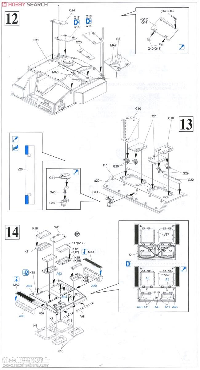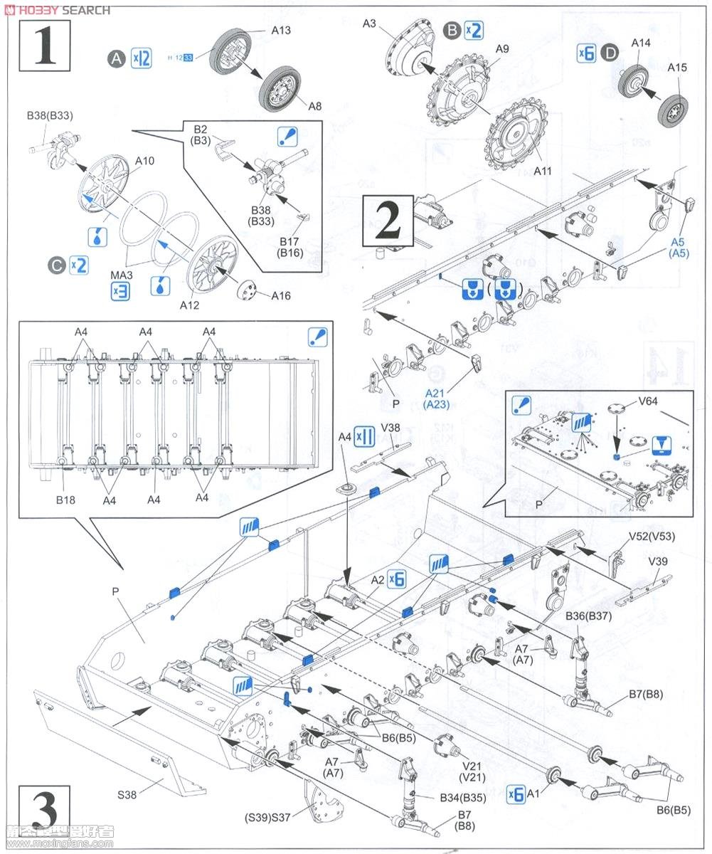 威龙的这盒三号突击炮F型终于洗掉了自己的红盒9128,作为SK版,使用了大量其他型号SK三秃子的零件,终于使板件不至于那么肉了。看似零件不少,但是蓝色用不到的零件更多,只是叶子板就给了3套,都是从其他模型中凑过来的,无疑又是一盒东拼西凑的货。作为SK新品,不新开几个零件是对不起玩家的,粗看说明书,只有H、R、Q等几个板件为新开,但是否如此,还要看到板件才能确定。PE还是三秃子那套一成不变的PE,DS履带也彰显了威龙全面DS化的决心,只是那小小的水贴,不仔细看都不容易发现,有些对不起模友了。 板件图和说明书: