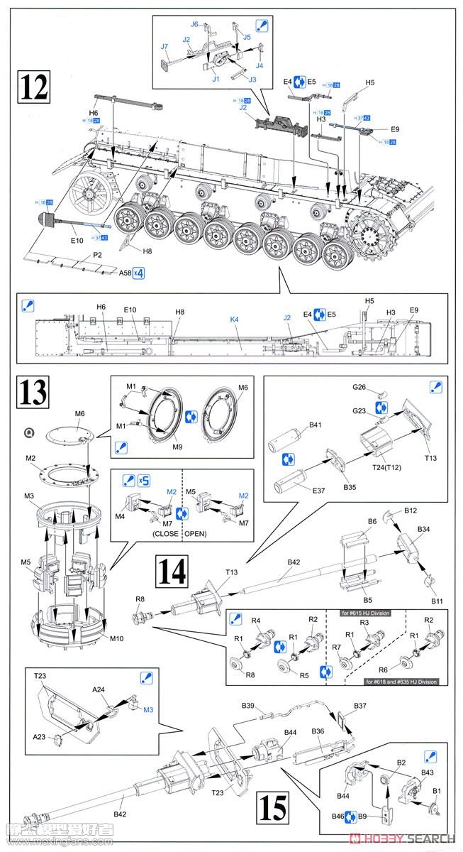 【威龙 6611】德国四号坦克H中期型加装防磁纹诺曼底板件图和说明书
