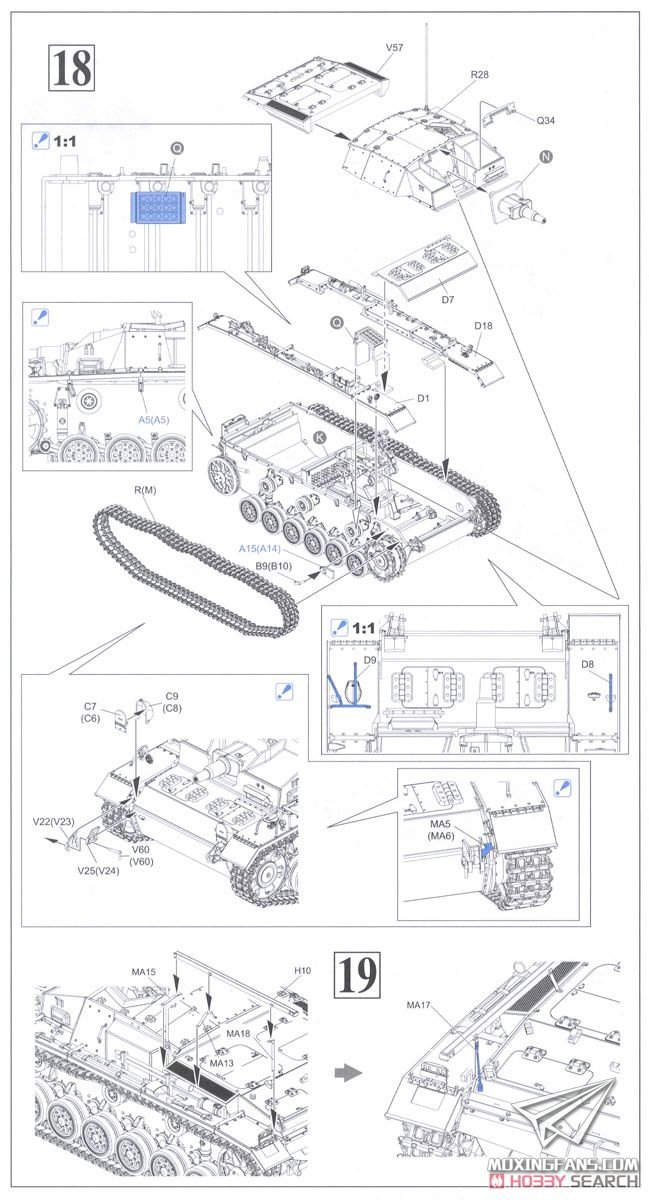 在成功推出了三号突击炮E型(6688)之后,威龙借势推出了这盒三号突击炮C/D型,目前这款模型日本已经上市,让我们来分析一下这款模型的配置。从板件图可以看出,这盒三突C/D型大部分零件还是来自于6688,新开的零件为D板,包括了新开的叶子板,车体前部装甲板,侧面倾斜装甲,舱门,灯罩等小零件,还多给了一点DS材质的军装。总体来说这盒三突的细节和组合度应该还是不错的,只是相对来说性价比略低。这次的板件图为日本版本,国内的首发版本还多给了魔术履带,非洲军专用的空滤(没给非洲军的相应水贴)。 板件图和说明书如下(来自HOBBYSEARCH):